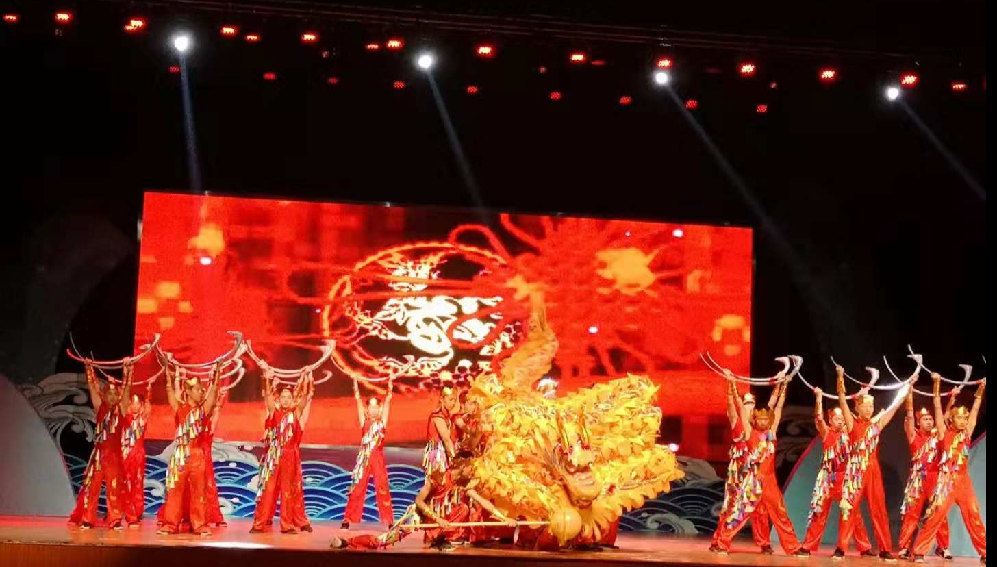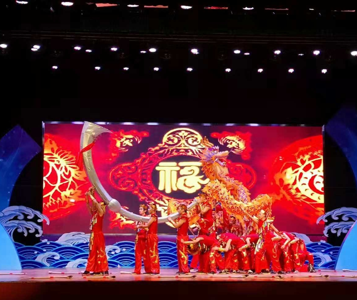 我院龙舞队借鉴了省非物质文化遗产“龙角舞”的特点,对龙角舞的形式与舞蹈道具上做出一些改进,摒弃一些封建迷信的内容,引入中国传统的舞龙元素,凸现中国地方民俗文化的色彩,强调了民俗舞蹈中“庆丰年、祈祥瑞”的内容。