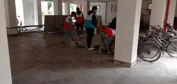 三月雷锋月,学习正当时。为响应部门学习雷锋精神倡议,彰显青春风采,3月10日下午,公共基础部宿管会全体成员集体开展了美化舍区志愿服务活动。对八栋宿舍公共区域集中整治清洁。