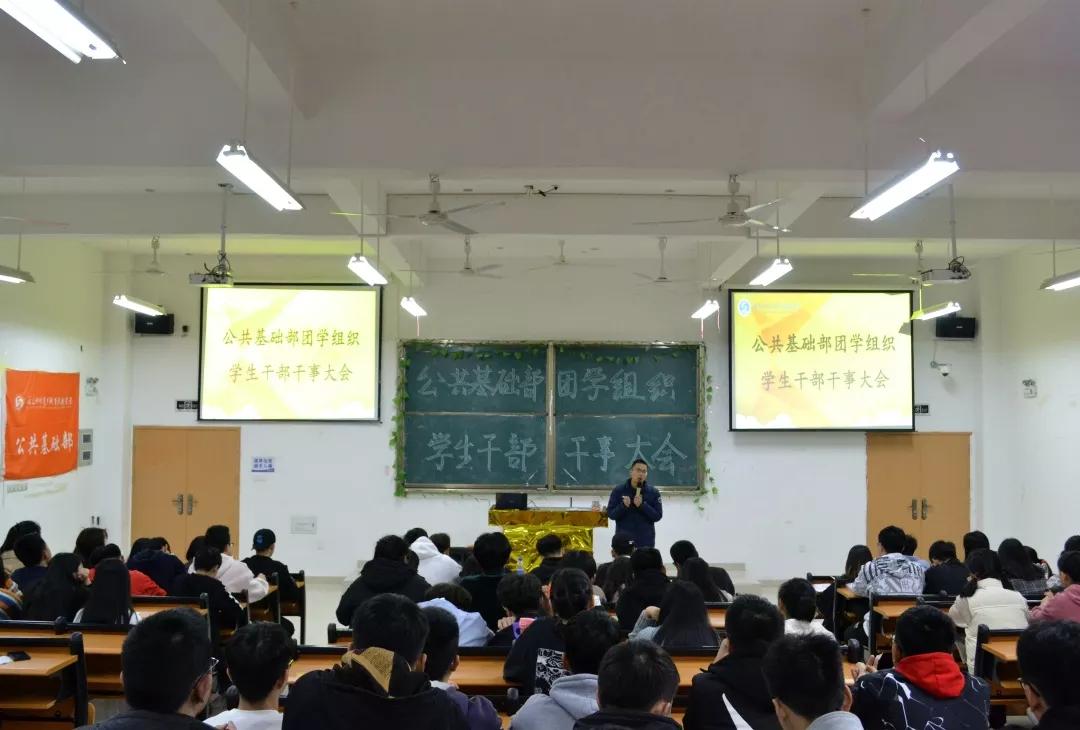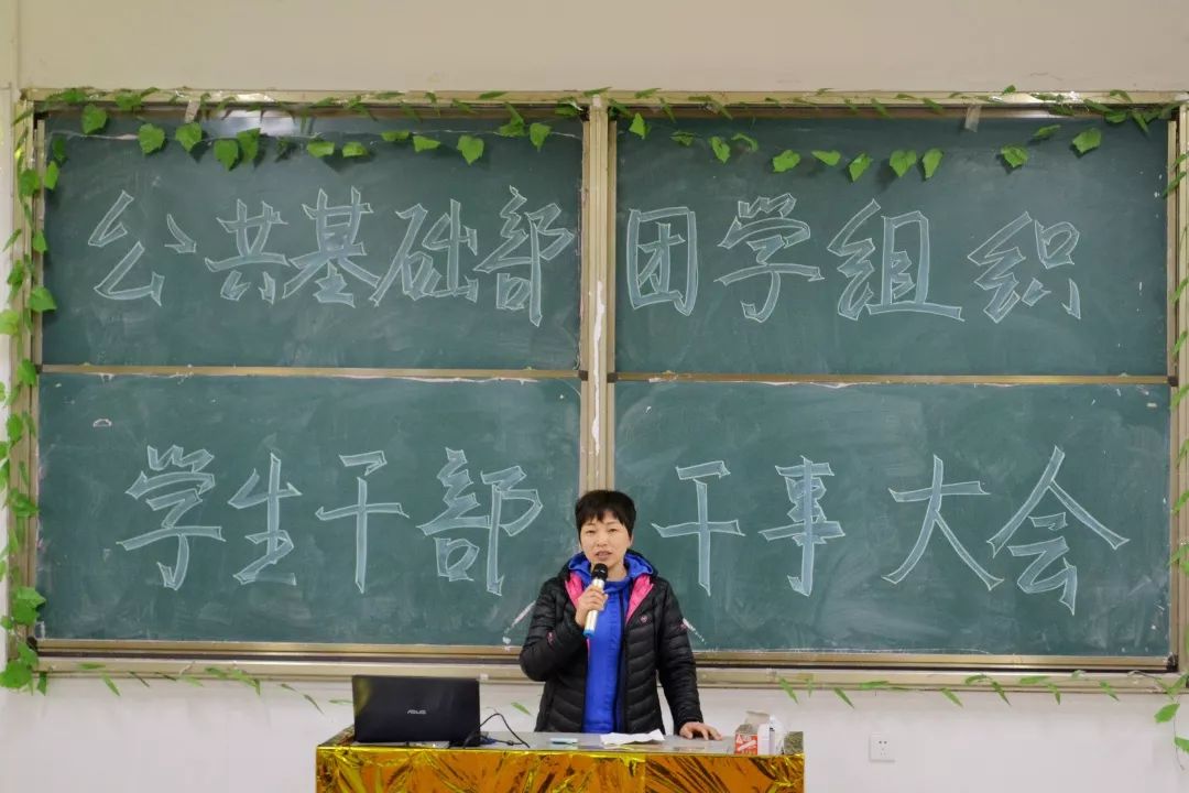 3月25日19:00,公共基础部团总支在禹兴园3-208召开团学组织全体学生干部干事大会,基础部学生管理负责人陈秀霞老师,凌世强老师参加并主讲。