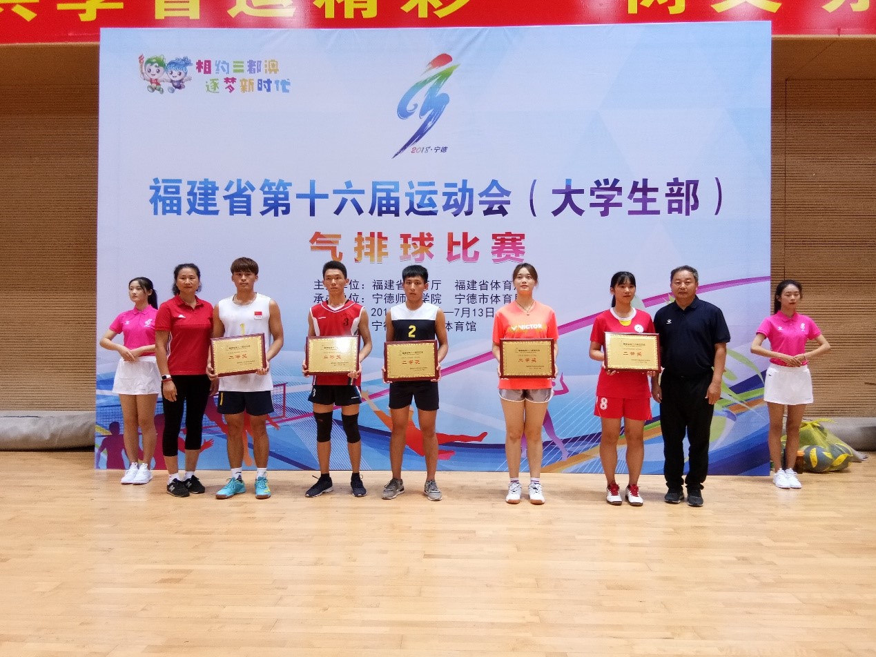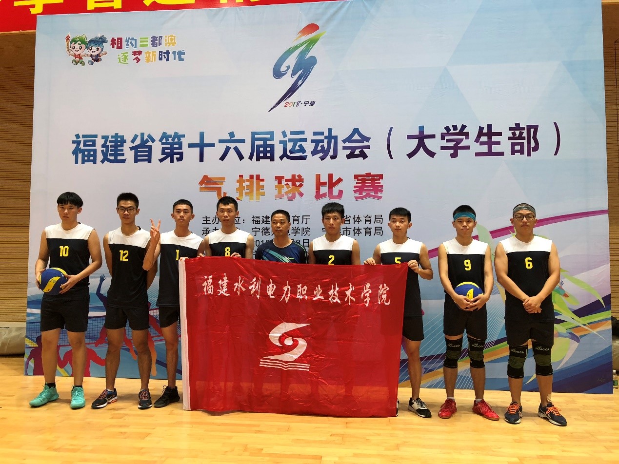 7月9日至13日,2018年福建省第十六届运动会(大学生部)气排球赛在宁德师范学院体育馆举行。我院公共基础部罗旌信执教的男子排球队经过3天7轮的激烈比拼,获得高职组男子气排球二等奖(季军)。赛场上,队员们沉着应战、奋力拼搏,出色的技战术配合,发挥了团队的配合精神,打出了水院学子的风采。