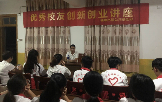 晚上19:00整,实践队员们在三明市青春扶贫创业孵化基地(尤溪县北宅沟生态旅游开发有限公司)二楼迎来了一堂别开生面的讲座。本次讲座的嘉宾是三明市人大代表、尤溪县北宅沟生态旅游开发有限公司总经理严良湘。在这个夜晚,严良湘结合自己的人生经历和对生态旅游农村建设独特感悟,为在场的实践队员们传授创新创业经验。