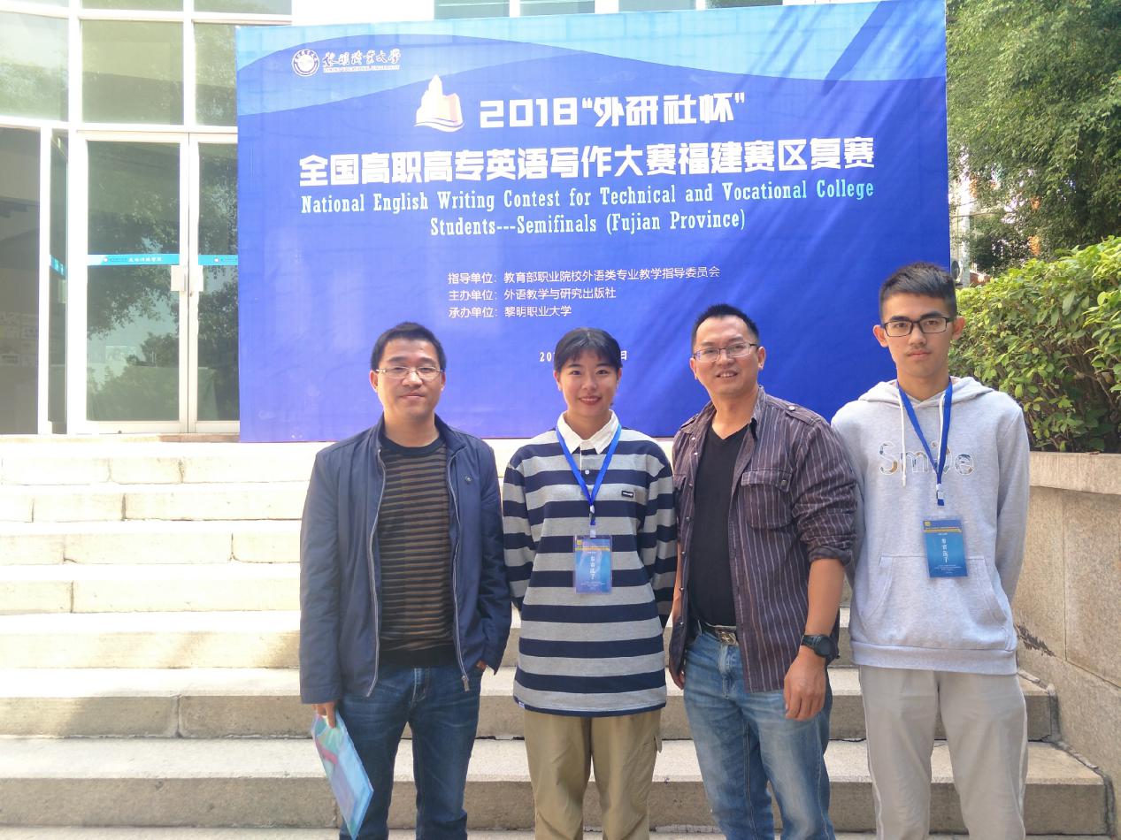 10月21日,由外语教学与研究出版社主办的第九届全国高职高专英语写作大赛福建赛区复赛在黎明职业大学开赛。本次大赛共有 23支院校代表队参赛。我院代表队由公共基础部余世江、蓝建淮老师指导的林静怡、朱琪两位同学在比赛中表现出色,分别荣获公共英语组特等奖和三等奖的好成绩。其中特等奖林静怡同学成功晋级全国总决赛。