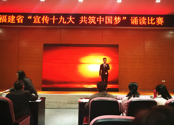 本月,由福建省教育厅、福建省语言文字工作委员会主办,泉州师范学院承办的福建省“宣传十九大 共筑中国梦”诵读比赛在泉州举行,共有来自41所高职高专院校的80位选手参加了竞赛。我院由廖爱军、张昆承两位老师指导的陈泓博、庄晨铮两位同学分别获得专科组第6名和第34名的好成绩。