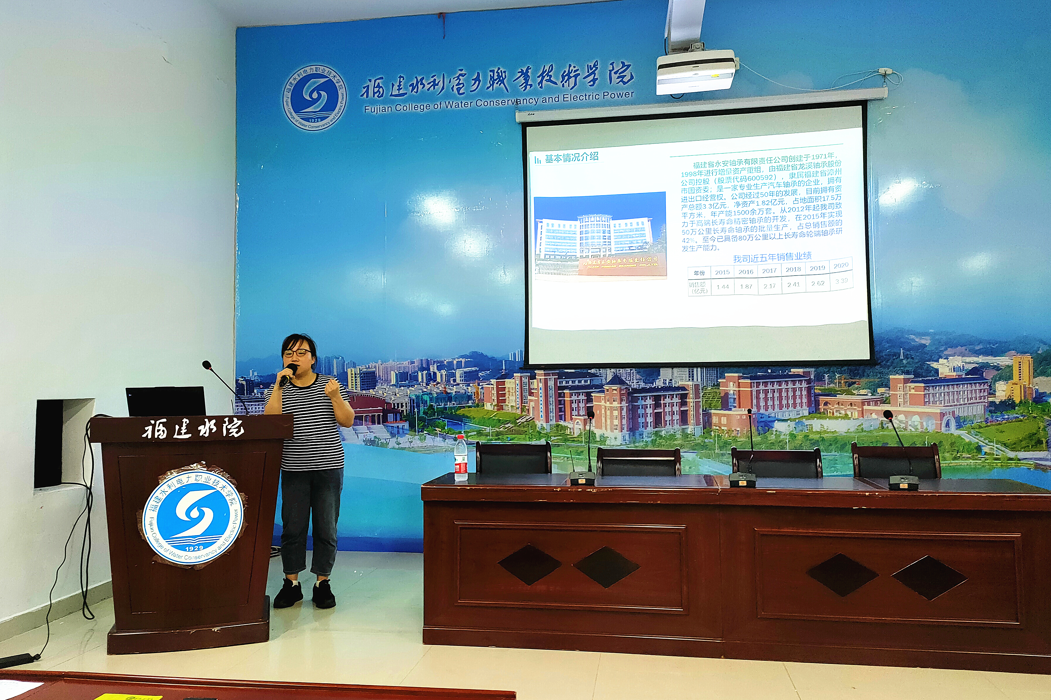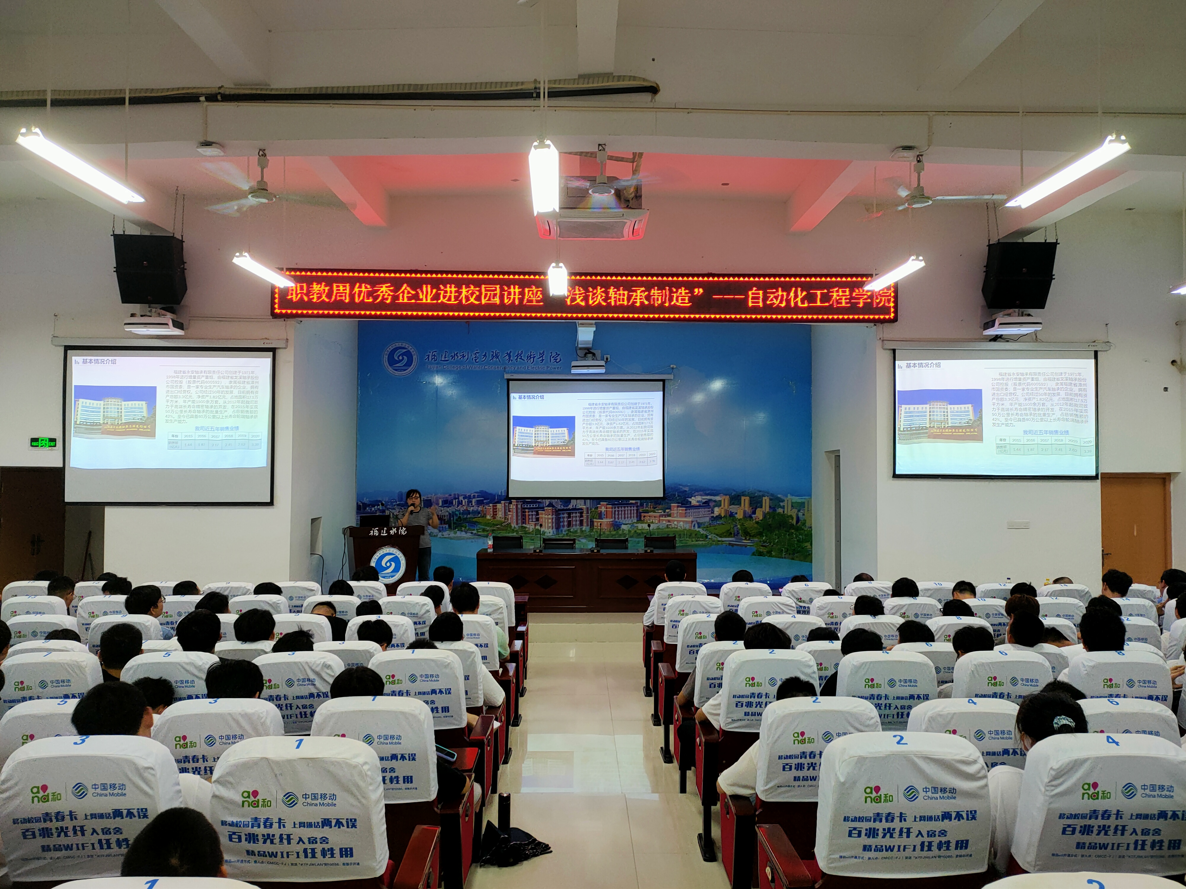 为响应学院职教周活动,同时让学生深入了解企业文化,5月20日,自动化工程学院特邀永安轴承有限责任公司在禹兴园3-112开展“优秀企业进校园”活动。本次活动由黄帆老师主持,永安轴承总经理助理、制造部部长连青惠担任主讲嘉宾,机电一体化、电气自动化等专业的200余名师生一起聆听了讲座。