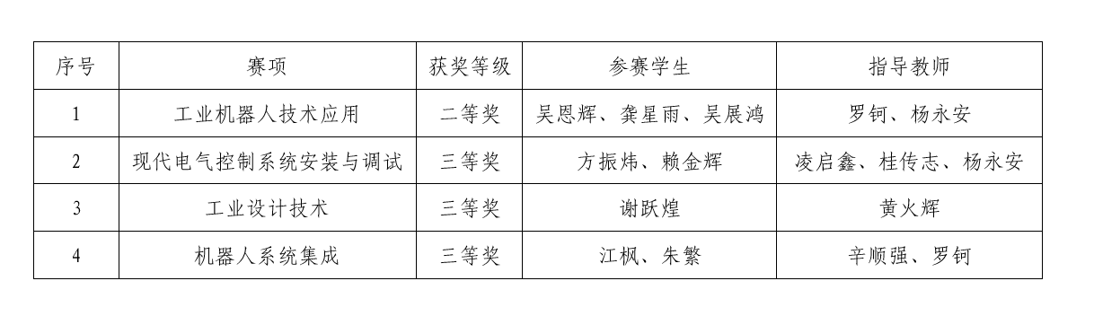 3月30日~4月3日,2021年福建省职业院校技能大赛高职组“工业机器人技术应用”“工业设计技术”“机器人系统集成”“现代电气控制系统安装与调试”等项目在各个分赛场举行。经过激烈角逐,我院学子吴恩辉等8位同学在机电系教师的精心指导下,沉着应战、默契配合、凭借扎实的基本功和良好的应变能力,喜获二等奖1项,三等奖3项,为我院赢得了荣誉。
