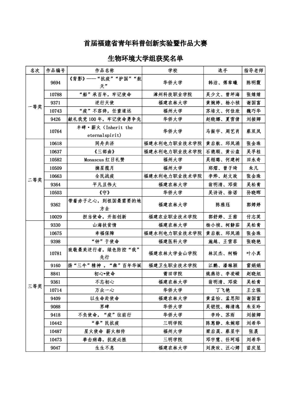 近日,首届福建省青年科普创新实验暨作品大赛福建省科技馆举行落下帷幕。我院张金珠、吴孚桂老师指导的由黄启航、邱凤涌、李烨、赵文政、石德顺、黄云盘等同学组成的参赛团队最终获得3个二等奖和1个三等奖的好成绩。