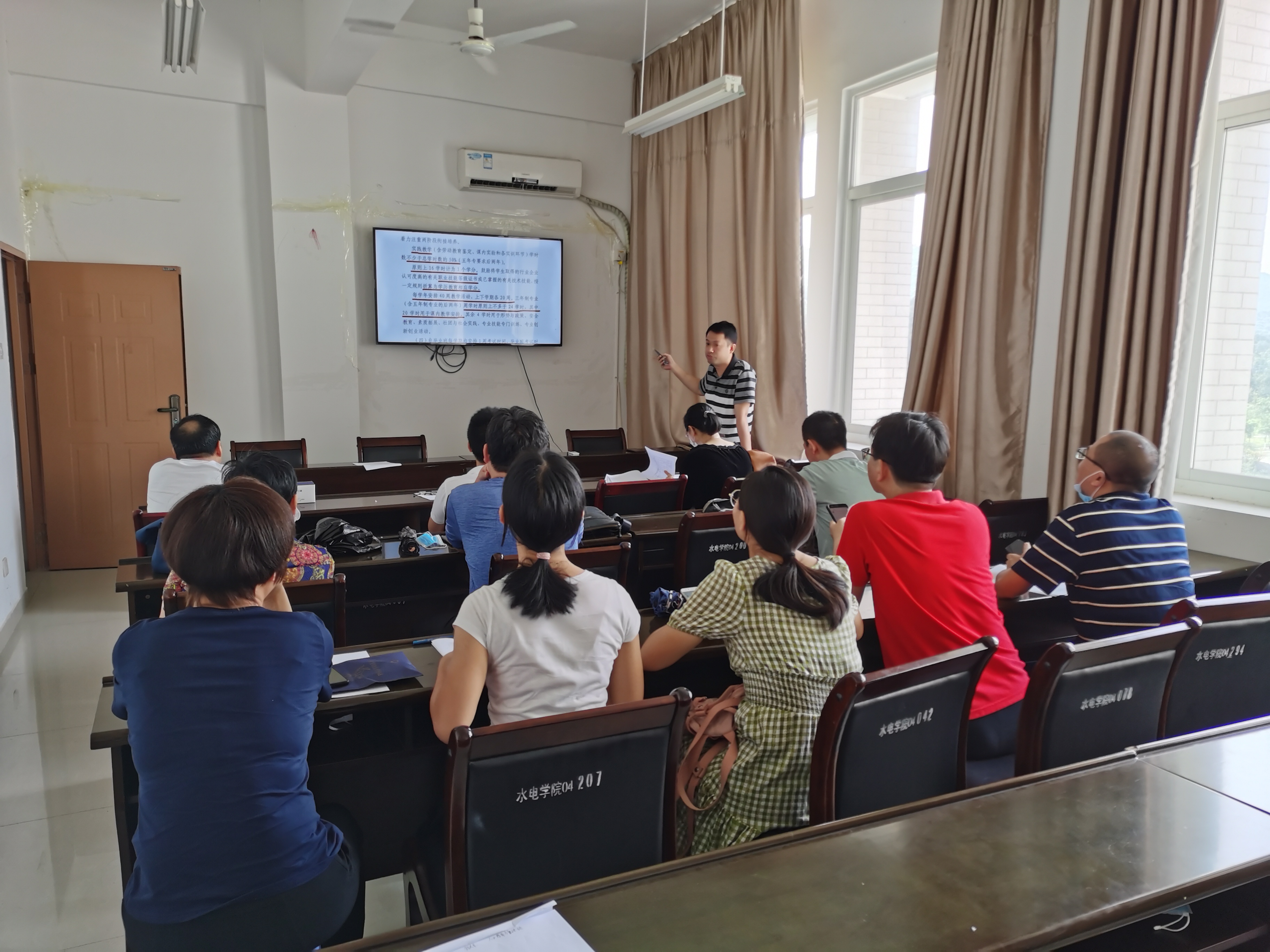 会上,兰嵩老师阐述了学院《关于制订2020级人才培养方案的指导意见(闽水院[2020]36号)》,强调培养方案在人才培养模式上重要性。随后电气、机械和汽车三个教研室主任、专业负责人进行了相关专业培养方案的汇报,其内容详实、脉络清晰、特色分明。论证会专家组成员针对重点问题进了积极讨论,指出培养方案中存在的问题,对课程体系设置,学生实践能力培养等方面提出优化意见。