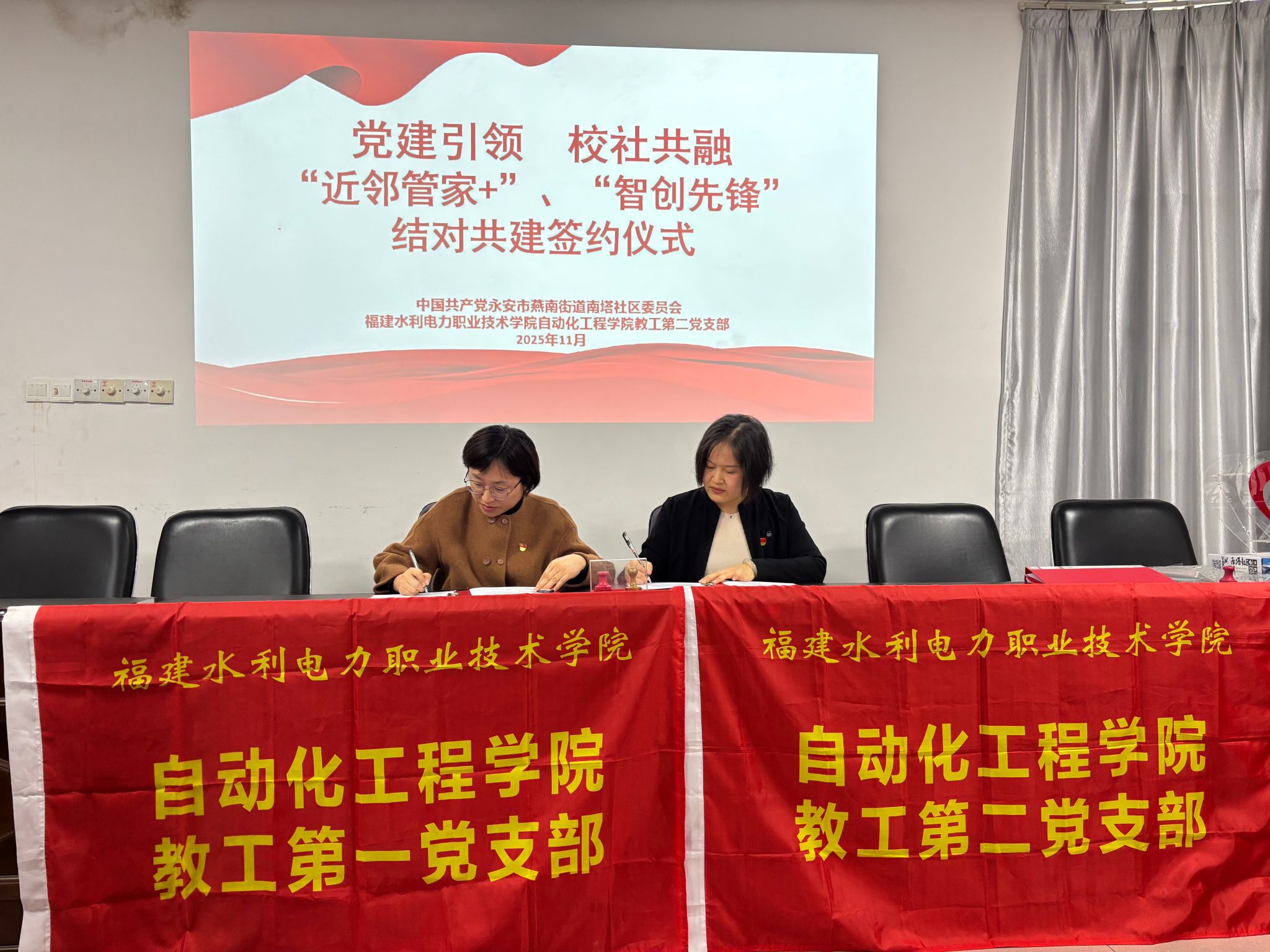 为落实福建省“强国行”行动党支部服务社区要求,11月12日,自动化工程学院教工第一、第二党支部赴南塔社区开展共建活动,并与社区党委共同签署《党支部联建协议书》,明确以“资源共享、优势互补、服务联动”为方向,建立常态化共建机制。