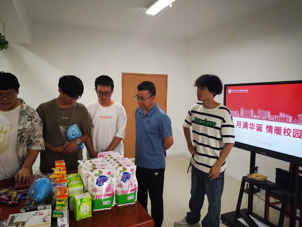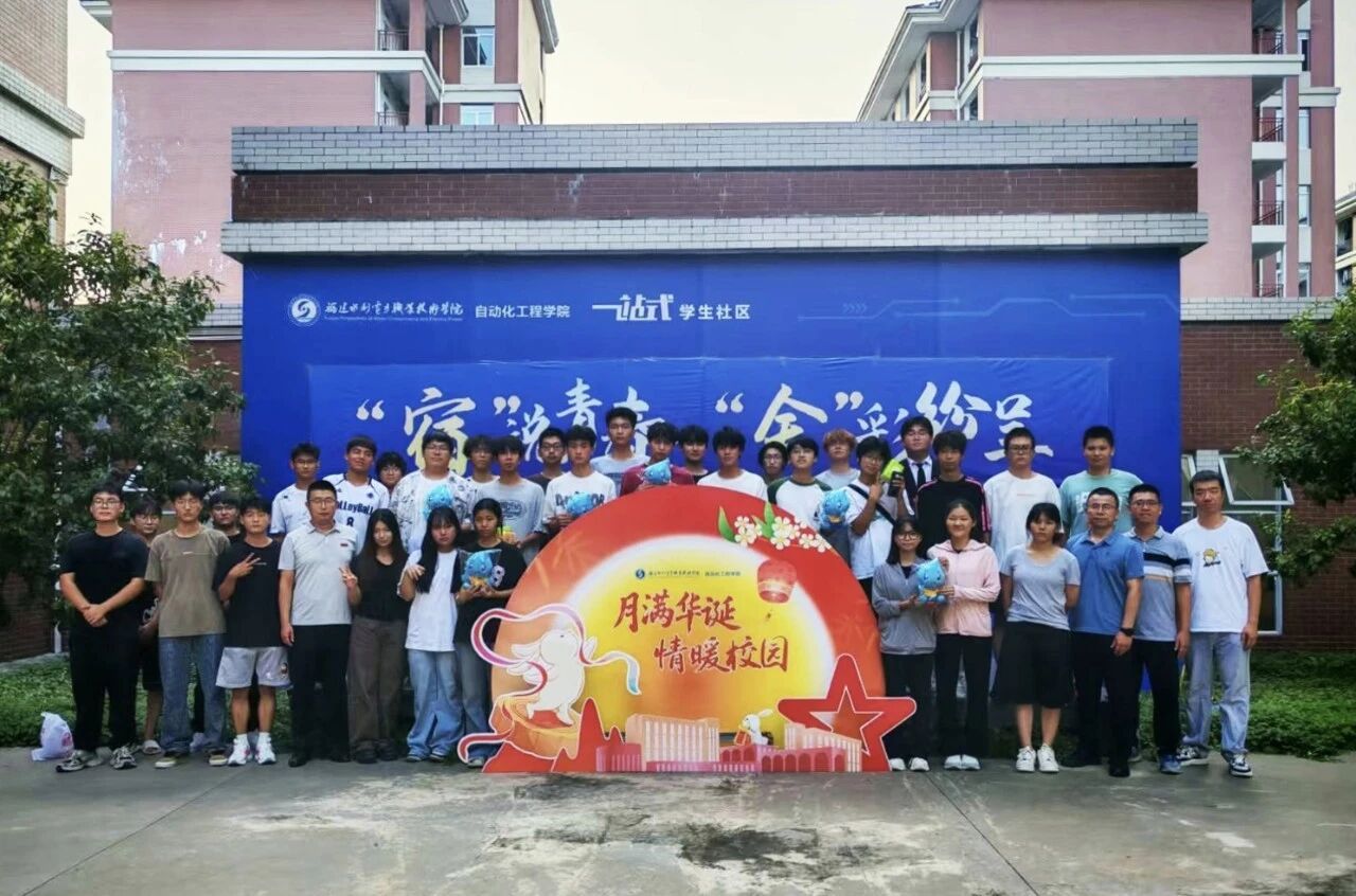 10月5日下午,自动化工程学院在5#-7# 宿舍广场区域举办了以“月满华诞·情暖校园”为主题的国庆中秋双节游园会活动。学院党总支书记祁建斌、副书记叶纯敏、学工办主任许广琦、辅导员韩旭等老师到场与留校学生共同参与。