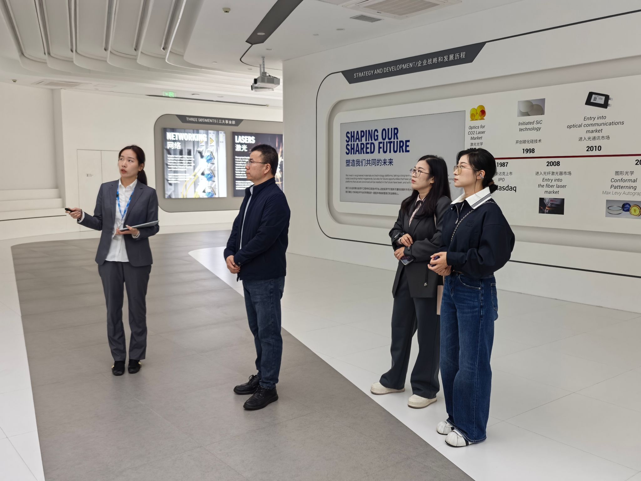 高意集团热情接待并陪同参观企业生产线及核心产品,学院教师直观了解了企业技术水平与发展态势,加深对行业前沿的认知。