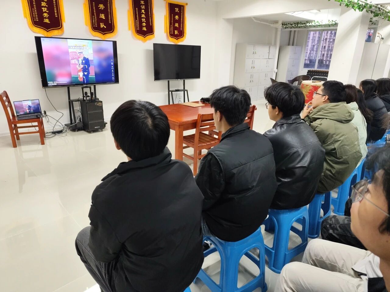 活动现场组织学生集中观看消防安全教育视频,通过影像教学方式,直观学习火灾预防要点及灭火器的规范操作流程,巩固学生的消防安全知识基础。