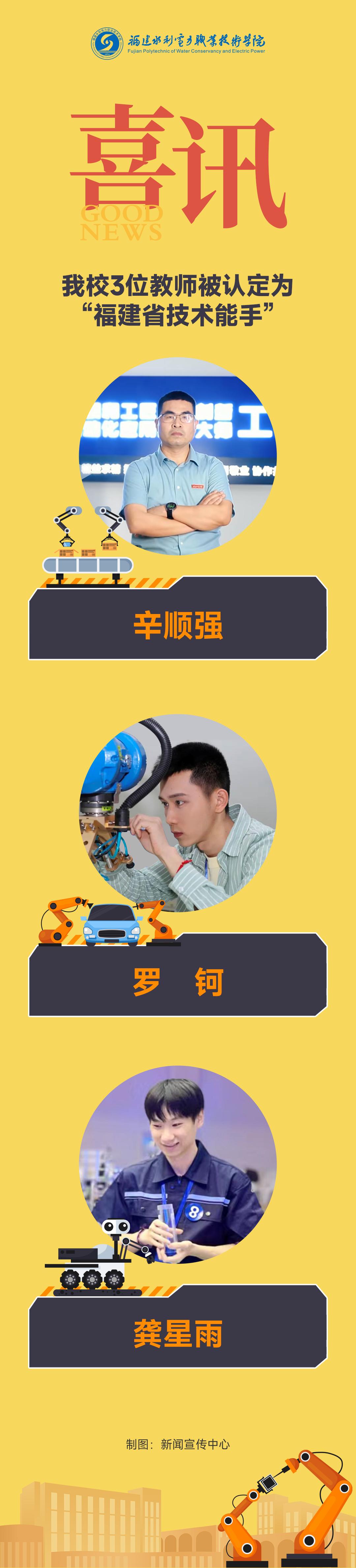 日前,福建省人社厅发布《关于认定2023年度职业技能竞赛优秀选手“福建省技术能手”的决定》。我校自动化工程学院教师辛顺强、罗钶、龚星雨被认定为“福建省技术能手”。