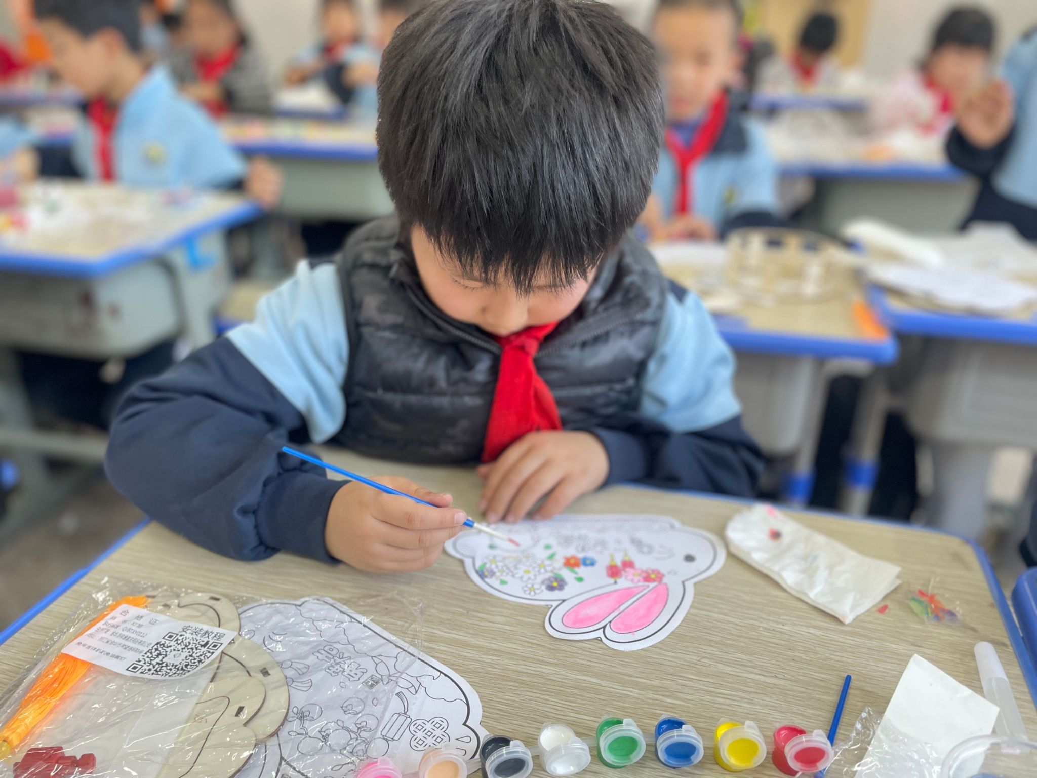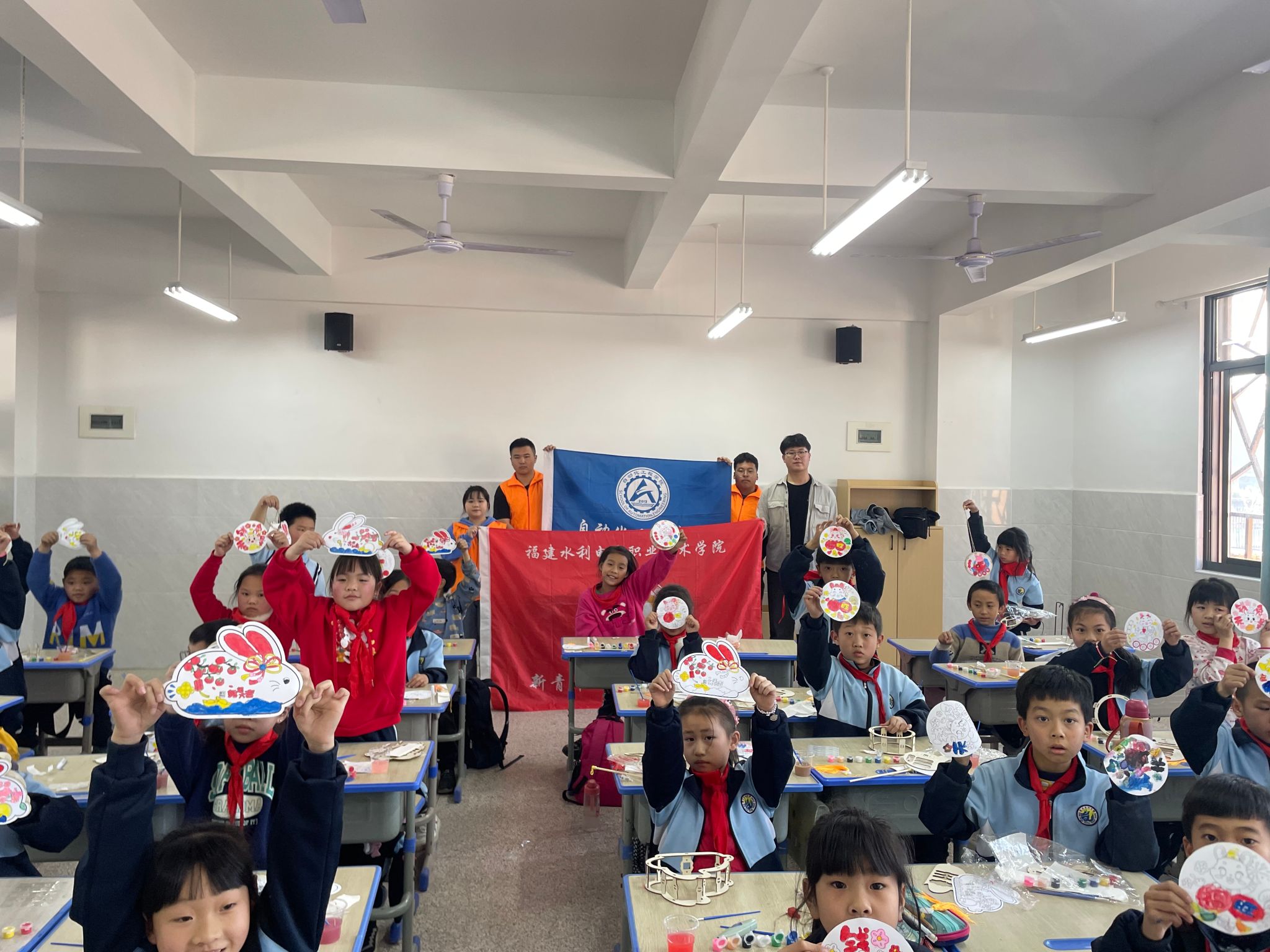 在共建单位贡川小学,“新青年”文化志愿团队也与小朋友们一起涂鸦灯笼,感受灯笼涂色的魅力。在活动过程中,志愿者向小朋友们讲述了灯笼的涂色方法以及表达的意义,耐心地指导小朋友们如何给灯笼涂色,如何进行色彩搭配,激发孩子们对传统文化的热爱。让小朋友们了解到灯笼是节日喜庆的象征,让其体验绘画的乐趣。同时,也能丰富小朋友们的课余生活,提高小朋友们的动手能力。