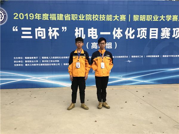12月22至23日,机电工程系方宇、朱繁两位同学在罗钶、黄丽晶老师的悉心指导下,在2019年度福建省职业院校技能大赛的机电一体化项目赛项取得新突破,获得三等奖的好成绩。
