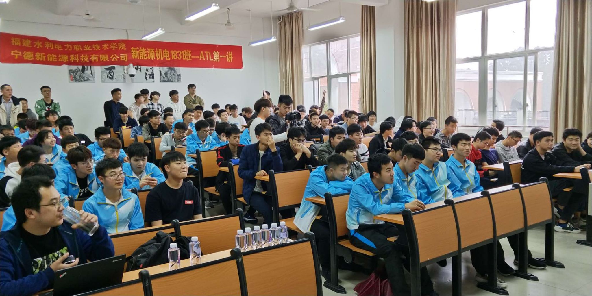 课前,机电工程系主任谢珍贵作了动员讲话,他希望同学们正确认识本次活动开展意义,尊重老师,遵守纪律、认真学习,学所有获。第一课分为两个环节:上午由ATL资深团建教官唐教官进行团队建设训练,让新组建的班级融为一体,打造良好的班级氛围;下午由ATL培训经理林巍然在学术报告厅为同学们开设锂电行业发展前景、奋斗文化等讲座。