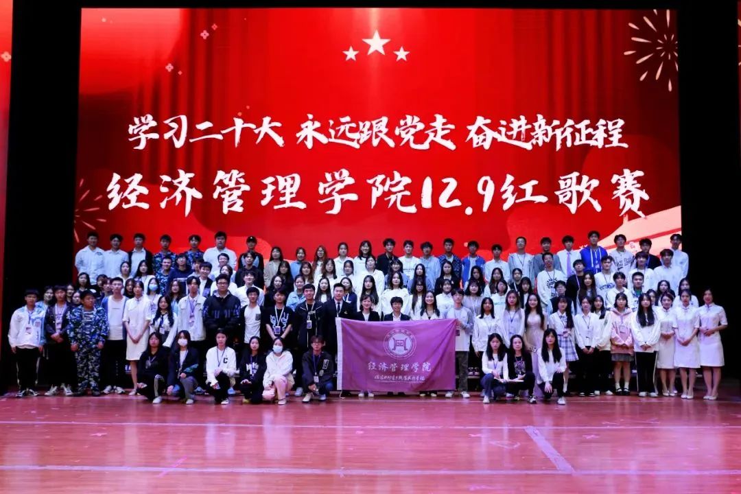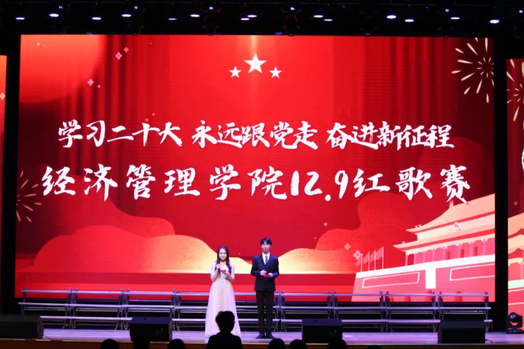 11月8日晚,经济管理学院在路港体育馆举行“学习二十大,永远跟党走,奋进新征程”12.9红歌赛。随着红歌旋律回忆激情燃烧岁月,用红歌还原历史真实写照,在一曲曲歌声中感悟共产党人的初心使命,再唱红歌给党听。