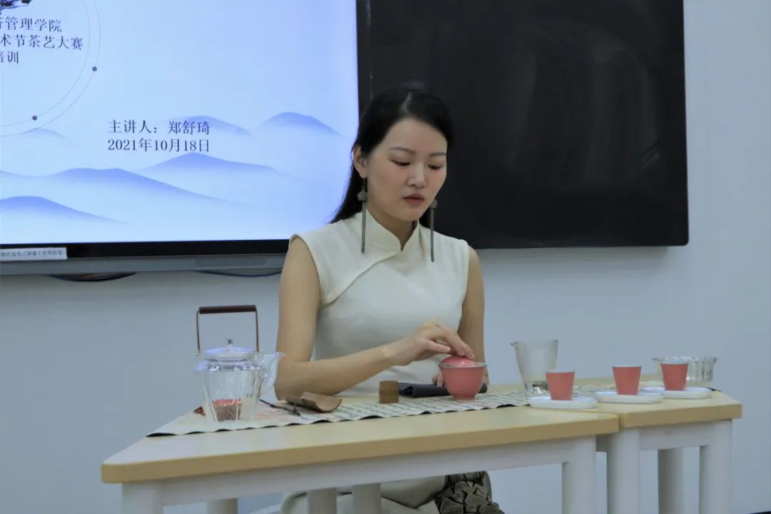 为引导青年学生传承中国优秀传统文化——闽商文化的普及传播,推广端木文化,将中国茶文化融入职业教育人才培养,经济管理学院特邀国家中级茶艺师、国家中级评茶员,湖南广播电视台茶频道"最美茶艺师"导师/评委,郑舒琦老师,为经管学院师生开展茶艺及礼仪培训。