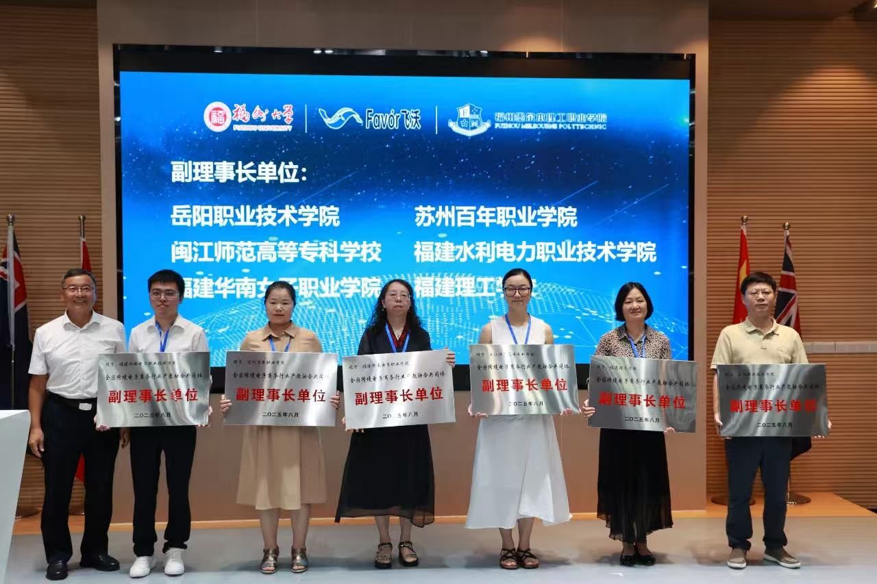 8月8日,全国跨境电子商务行业产教融合共同体成立大会在福州举行,经济管理学院主持工作副院长邵李津携电子商务教研室教师参加。本次大会由福州大学、福州墨尔本理工职业学院、福州市跨境电子商务协会会长单位福州飞沃贸易有限公司牵头,以 “聚势产教・智链未来” 为主题,汇聚全国 35 所高校、31 家企业及行业协会代表。