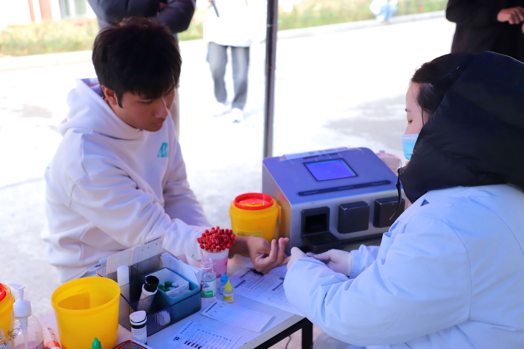 支部党员和入党积极分子们主动挽袖,捐献热血,积极配合医护人员完成健康检查、血液检测等规范操作。每一份合格血液的顺利采集,都汇聚着生命的希望,体现以实际行动守护生命健康的责任意识。在服务岗的党员们做好流程引导、信息登记与关怀照护等保障工作,为献血同学提供支持。