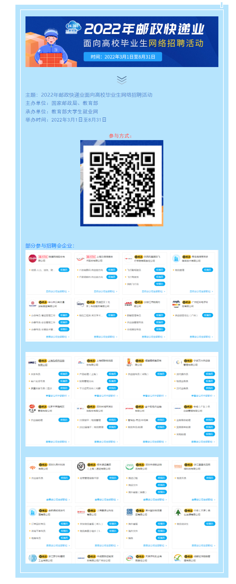 招聘信息| 2022年邮政快递行业面向高校毕业生网络招聘活动启动