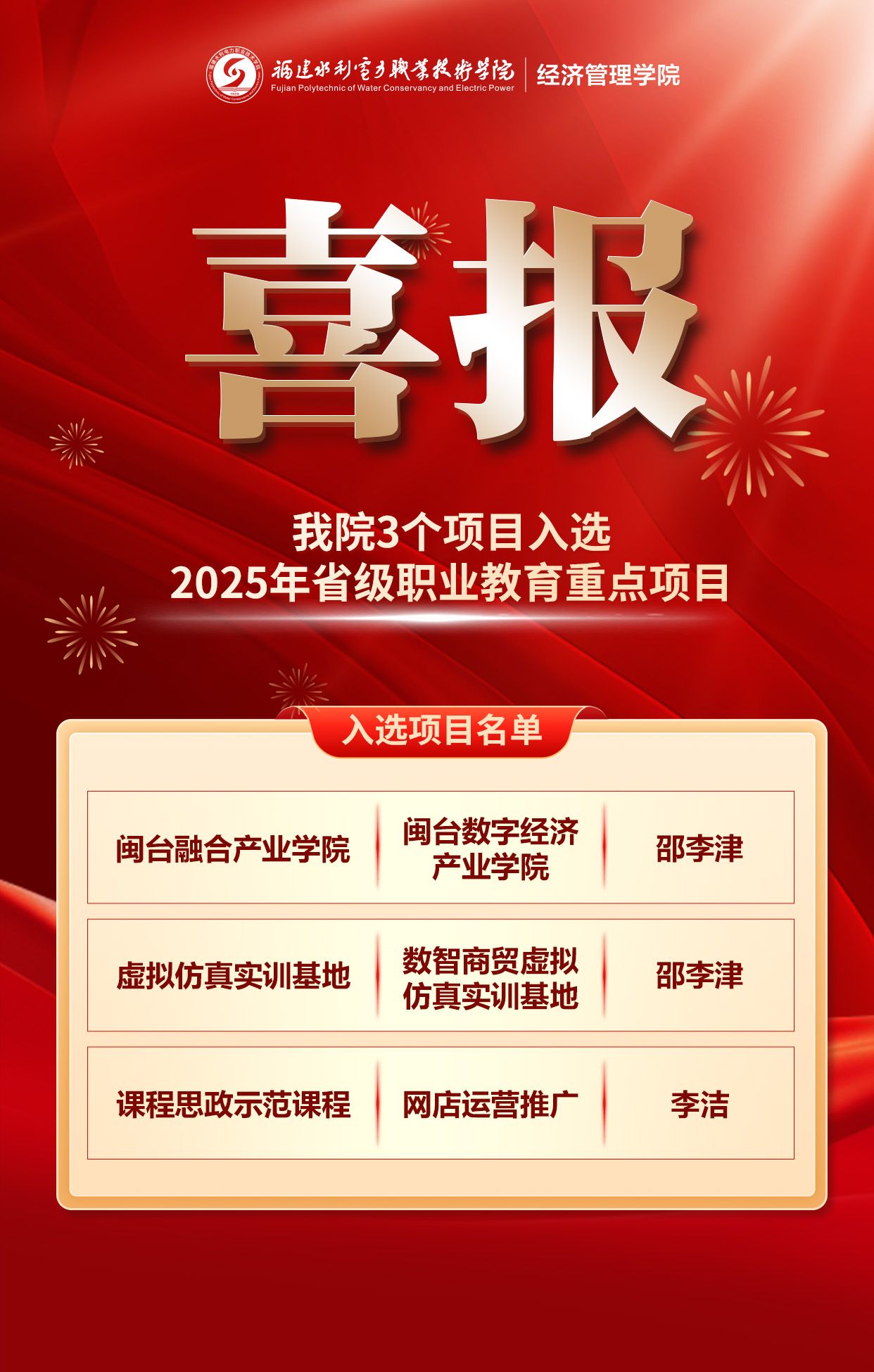 近日,福建省教育厅公示《2025年省级职业教育重点项目拟认定名单》。我院三个项目成功入选。