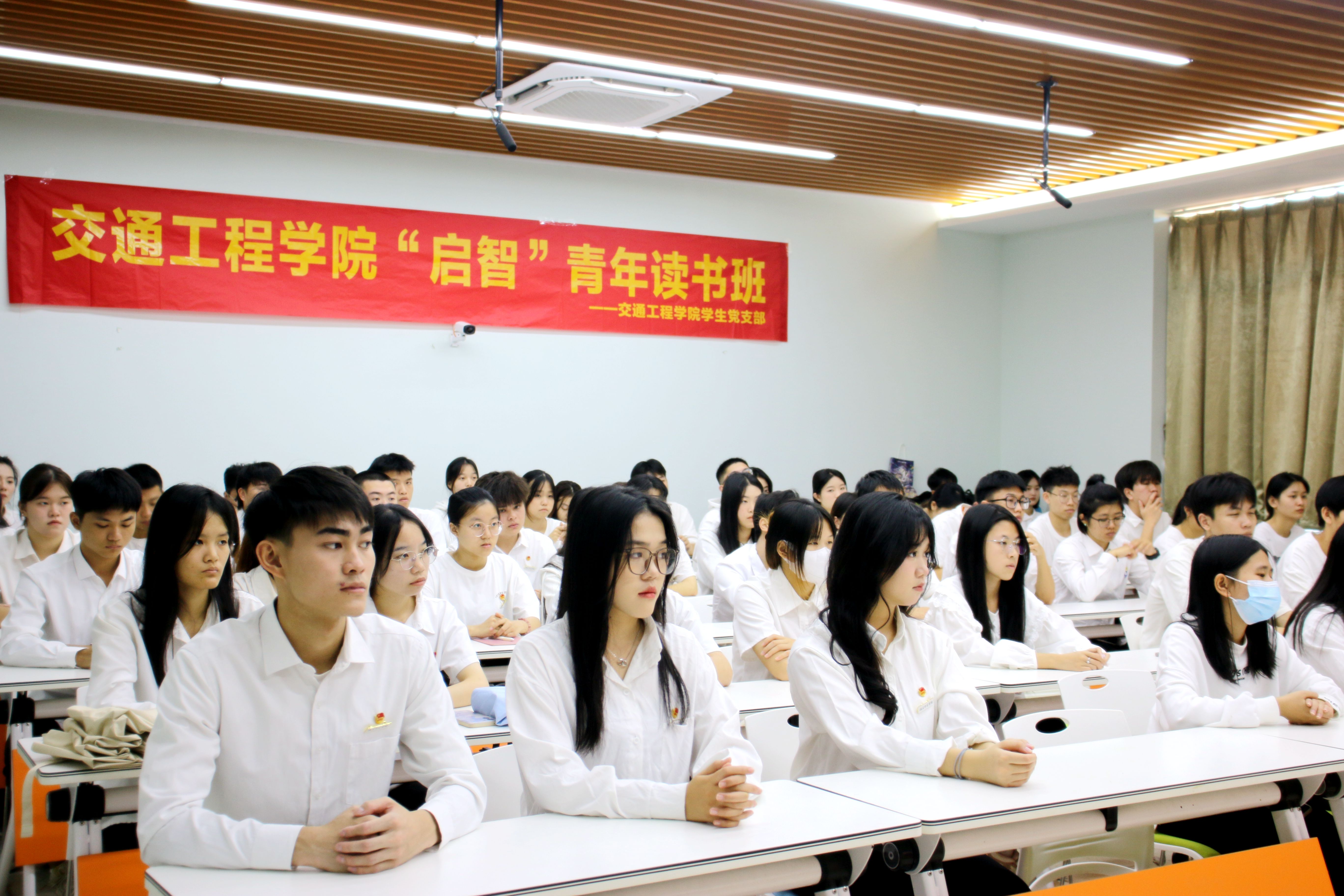 为深入学习宣传党的二十大精神和习近平新时代中国特色社会主义思想,认真贯彻落实习近平总书记关于青年工作的重要思想,落实新时代党对共青团工作的各项要求,交通工程学院学生党支部“启智”青年读书班活动第一期顺利开班,交通工程学院党总支书记戴良基、党政办公室主任吕奕、专职组织委员邓婷婷,学生党支部支委委员:黄驹辉、管诗敏、张敏和在校58名入党积极分子参加开班仪式。