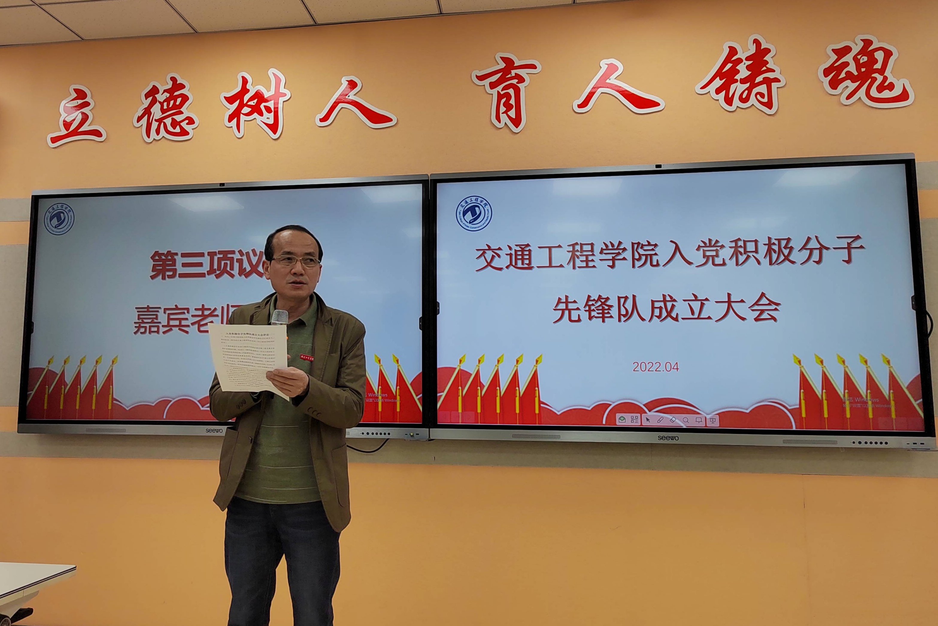 为进一步夯实基层党组织建设,加强对入党积极分子的教育管理、培养考核,增强入党积极分子的组织纪律和先锋模范带头作用。4月5日下午,交通工程学院党总支召开了入党积极分子先锋队成立大会。学院党务工作负责人戴良基、专职组织员邓婷婷、学生党支部3名委员及2020级全体入党积极分子参加了成立大会。