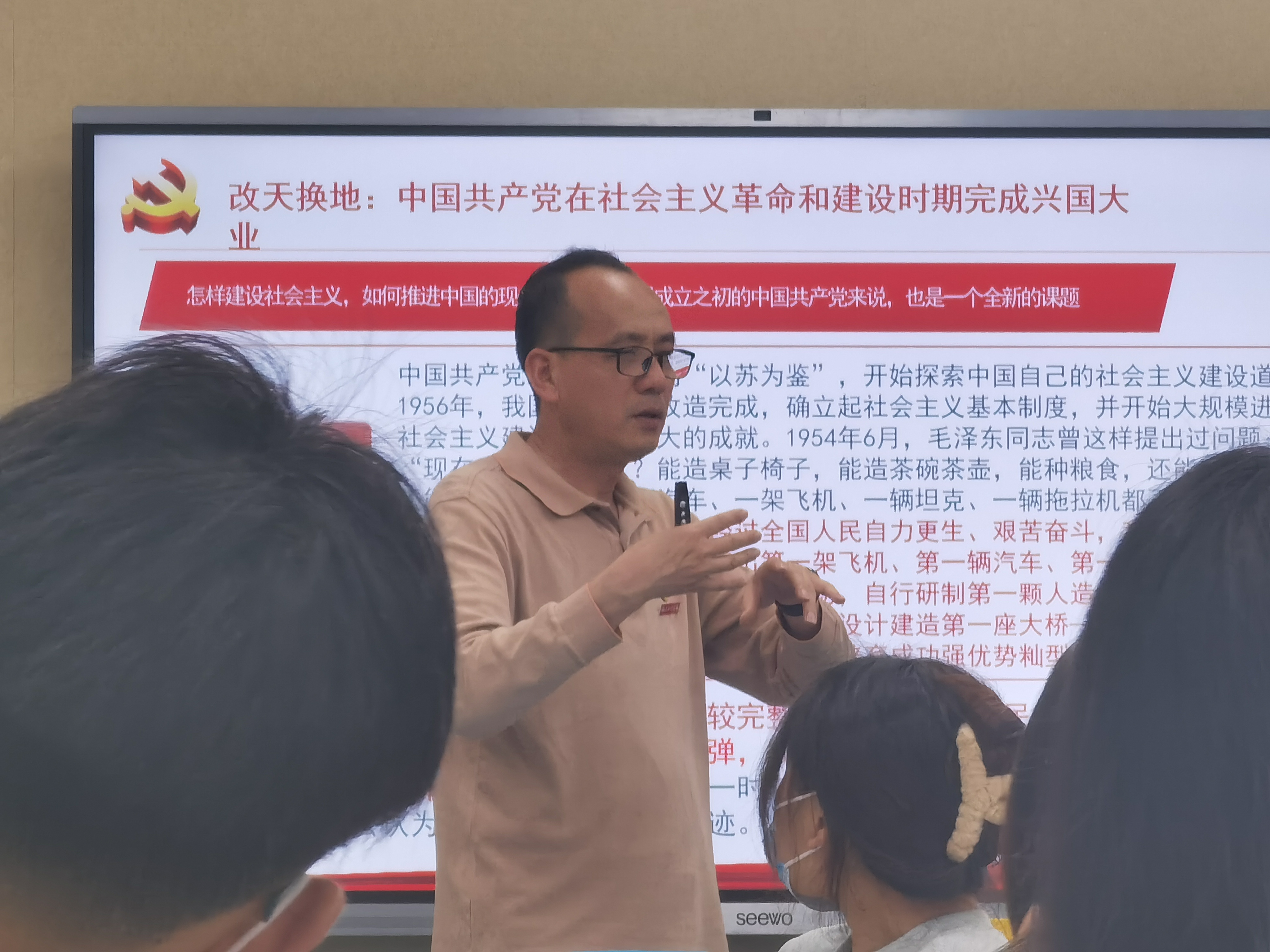 戴良基老师从中国共产党百年历史展为主线,从“开天辟地、改天换地、翻天覆地、惊天动地”四个历史时期,中国共产党完成和推进了四件大事,从四件大事讲述中国共产党百年辉煌党史。党课最后学习小组针对“大学生如何以实际行动早日加入中国共产党”进行了小组讨论。