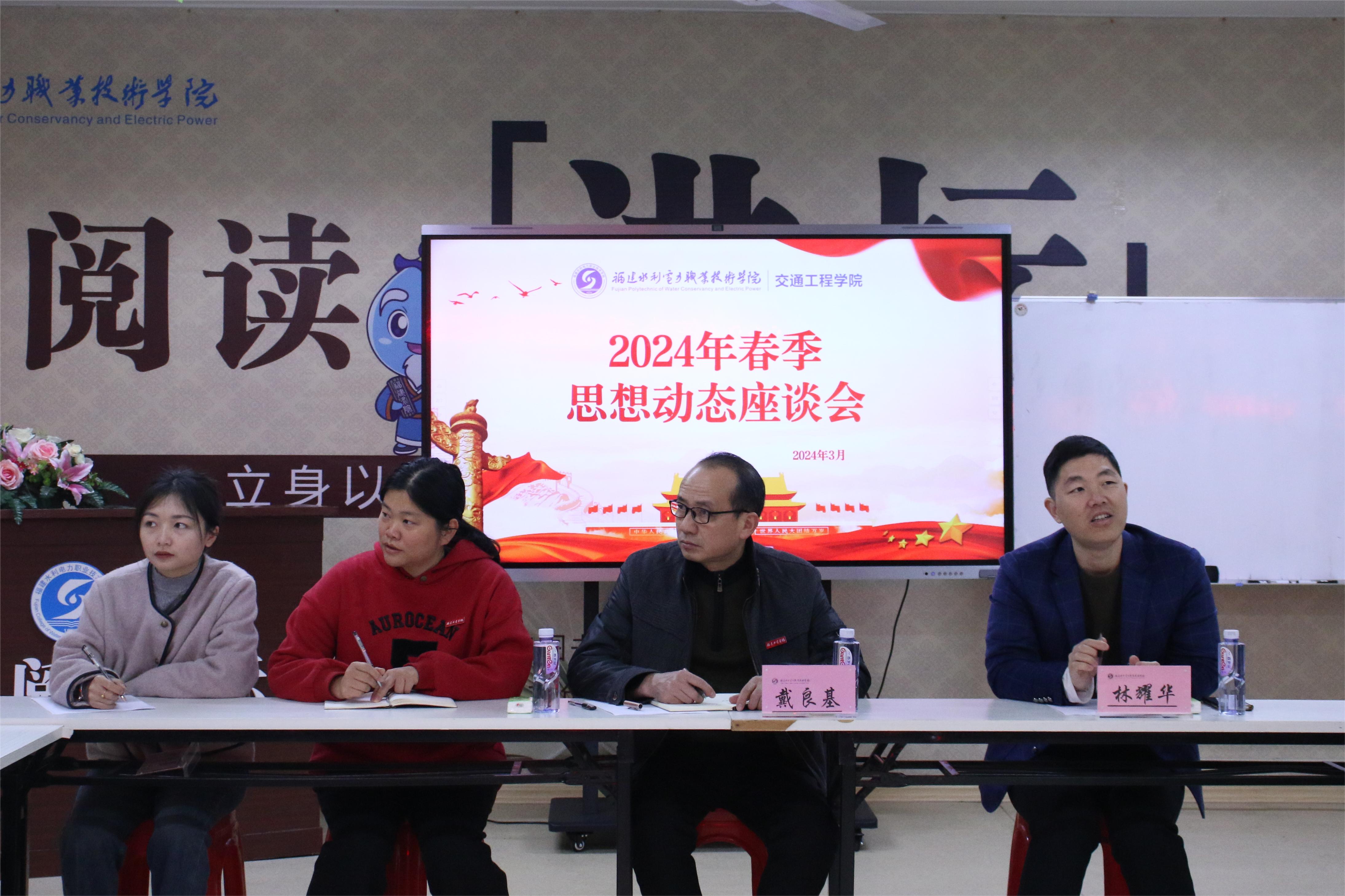 新学期伊始,为及时、准确、全面了解2024年春季学期期初全校学生思想状况,更好开展学生思想政治教育和价值引领,结合思想政治工作常态化调研工作要求,为及时掌握开学期间学生思想动态及学习生活情况,3月7日上午,交通工程学院党总支组织思政班主任(党员教师)、辅导员,深入交通工程学院学生中开展春季学生思想政治工作调研。本次调研主要通过面对面座谈会,宿舍走访调研两种方式开展,旨在深入学生,倾听学生真实想法,了解学生心声,及时回应解决学生所思所想。