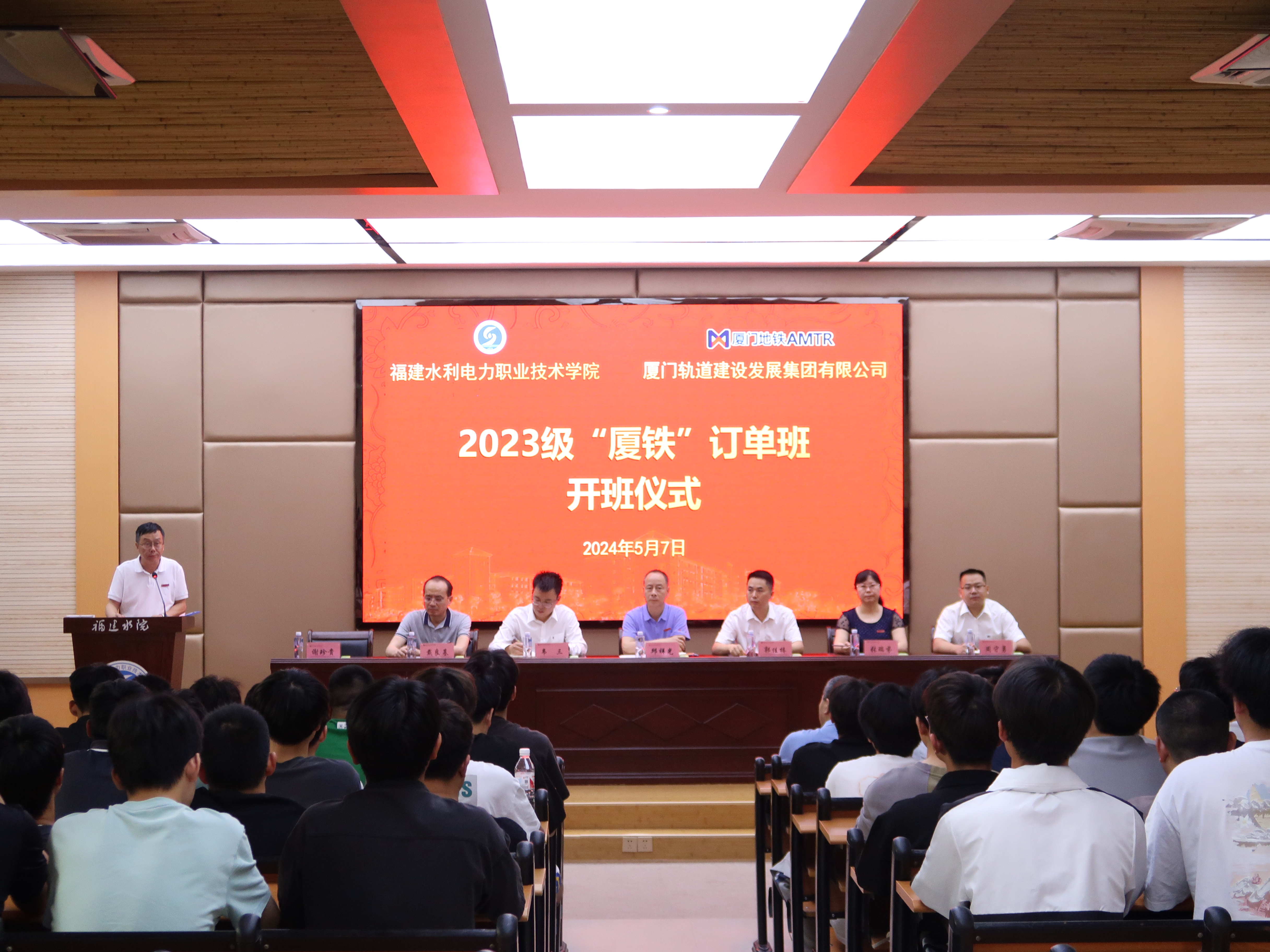 5月7日,2023级厦门地铁订单班开班仪式在我校举行。学校纪委书记邱祥光,厦门地铁运营有限公司工务供电分公司纪委书记郭佳椿等出席会议,交通工程学院相关人员以及订单班师生代表参加。