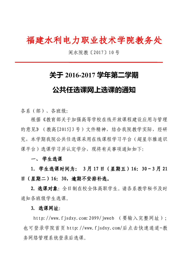 关于2016-2017学年第二学期公共任选课网上选课的通知