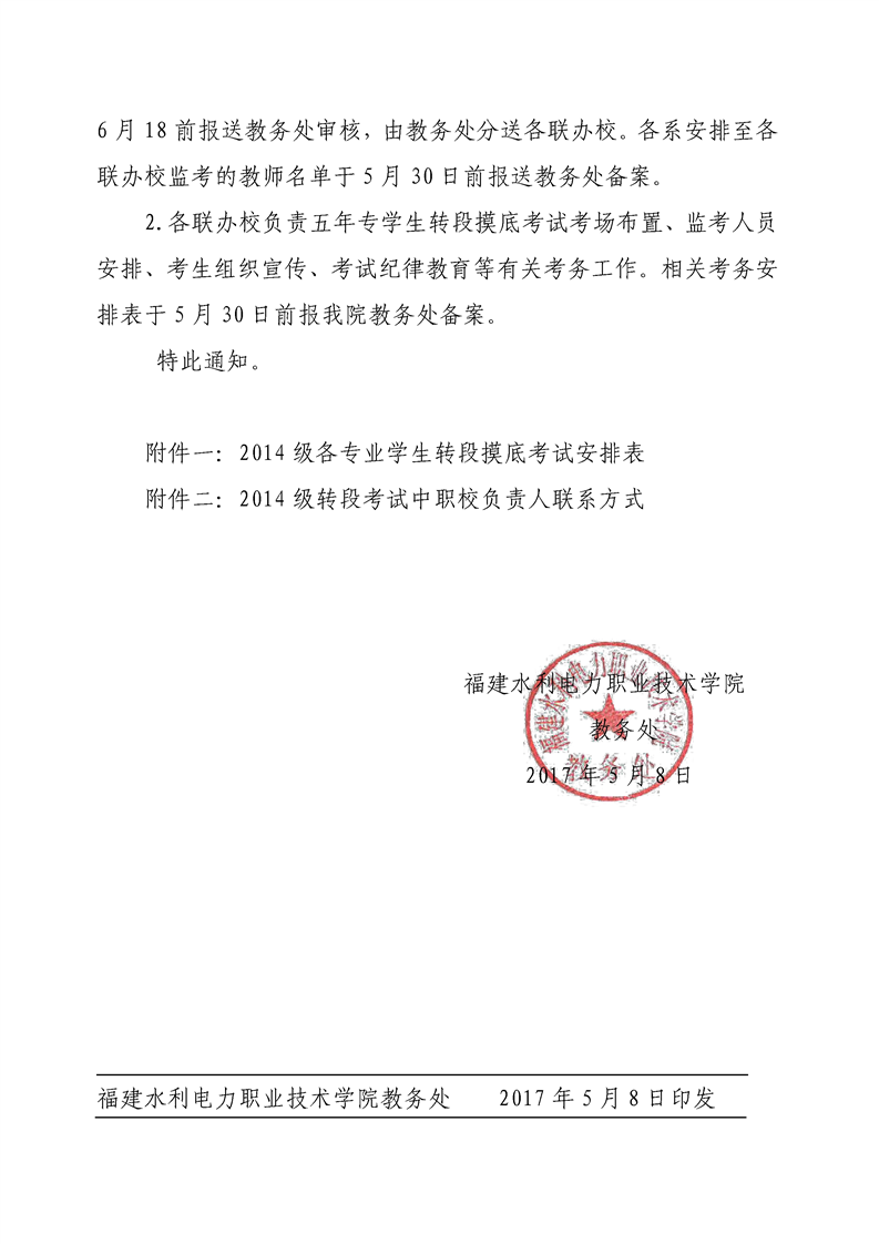 关于组织2014级五年专学生参加转段摸底考试的通知