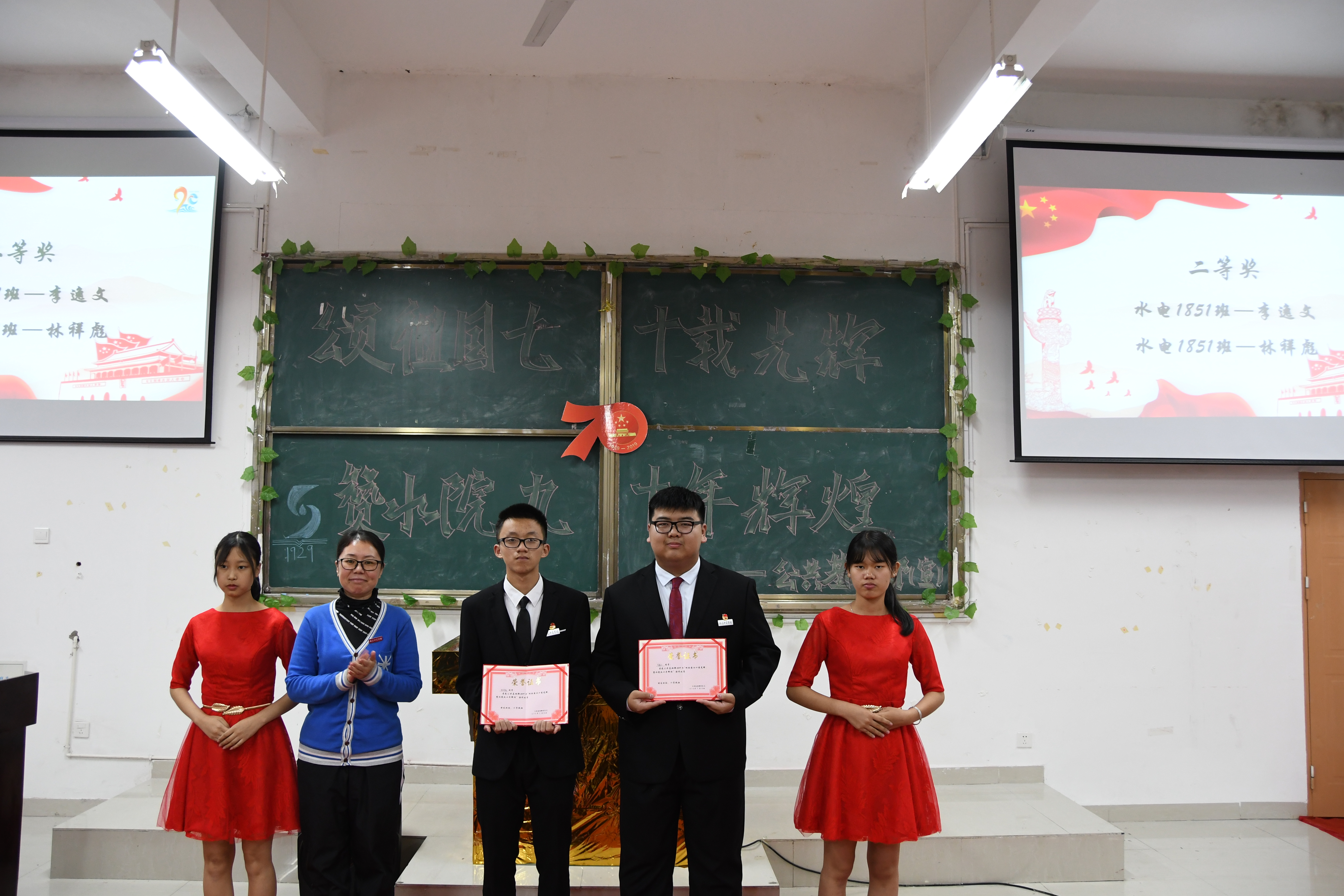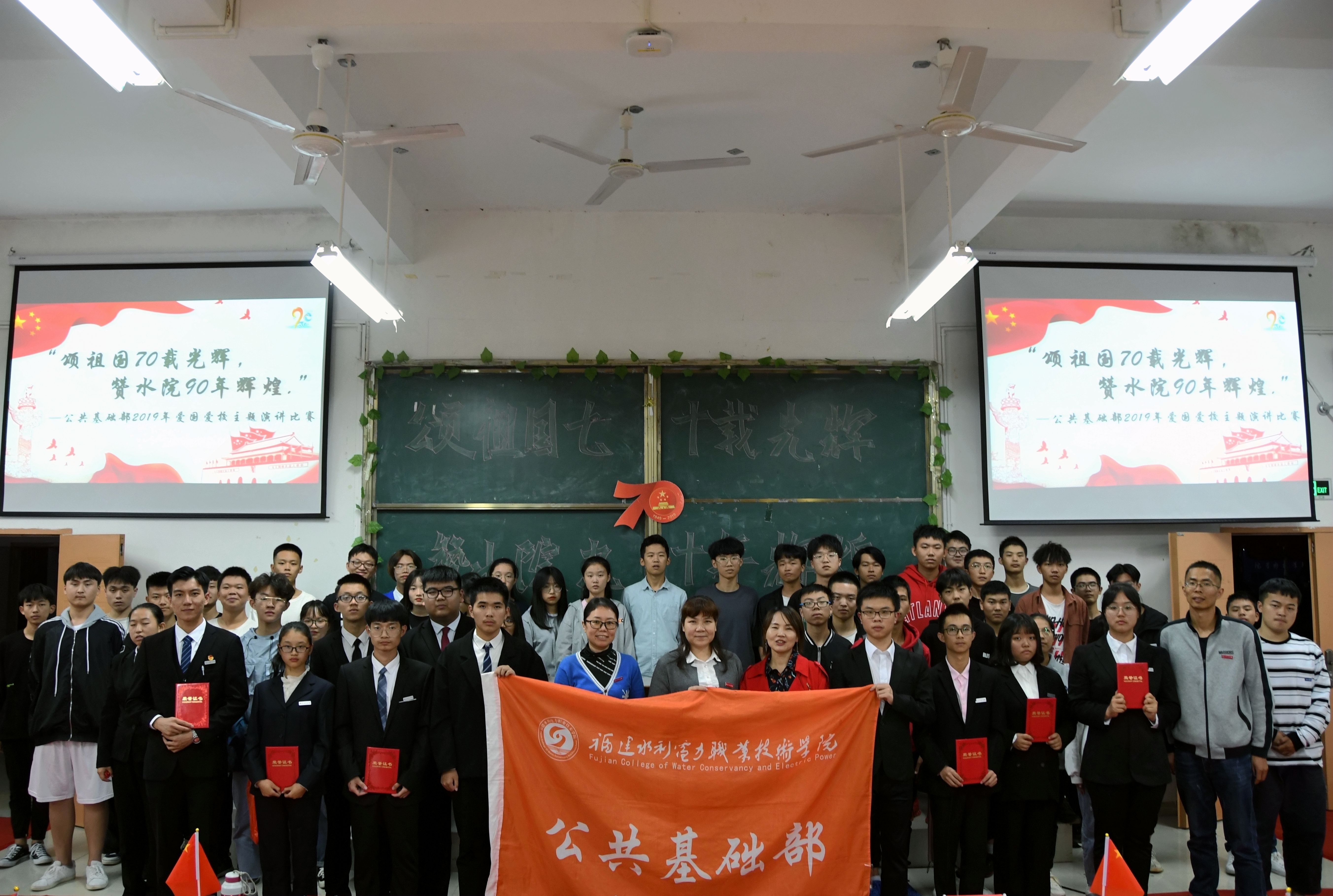 10月29日晚,公共基础部在禹兴园3-105举办“颂祖国七十载光辉,赞水院九十年辉煌”主题演讲比赛。公共基础部蔡雪妹、廖爱军、陈海疆三位老师担任评委,各班级代表参加了演讲比赛。