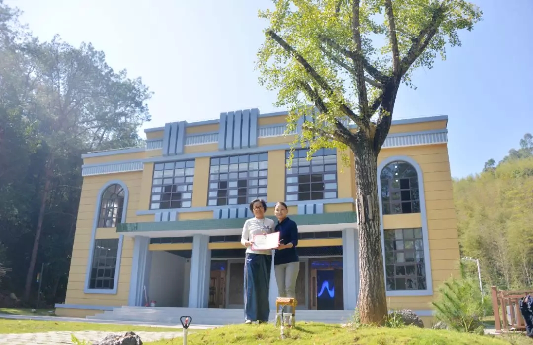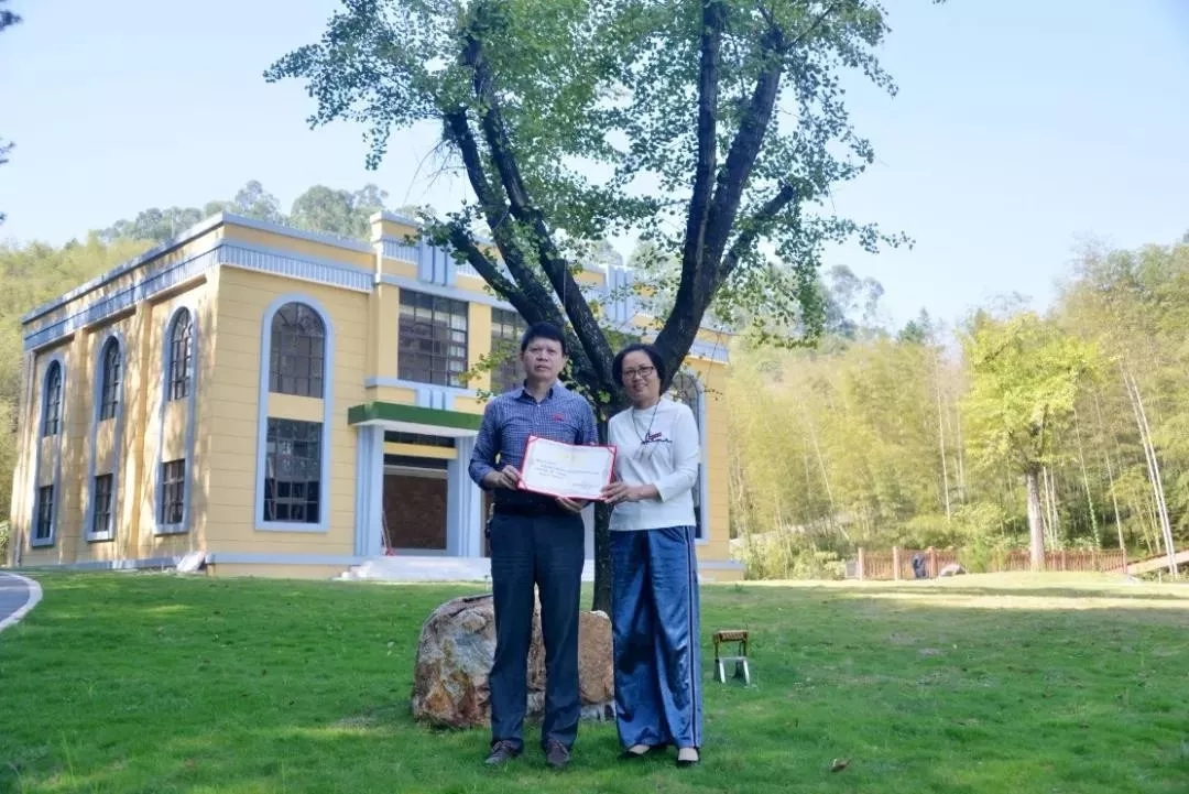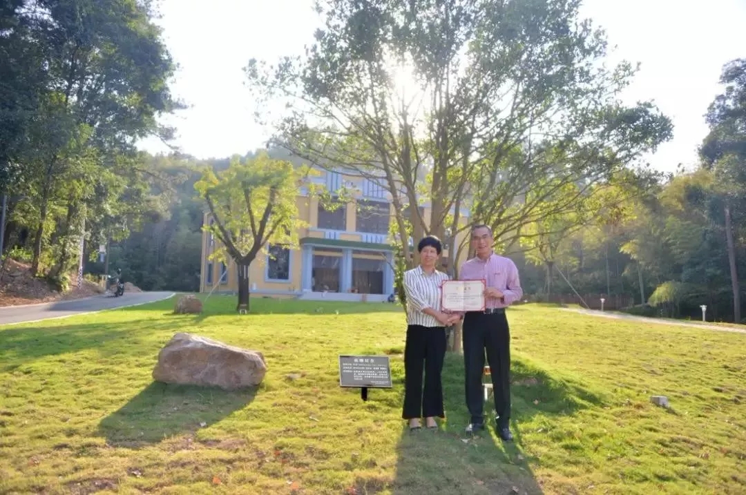 电力9142班校友认捐校史馆门前含笑树,电力9142班叶玉萍代表班级进行捐赠,学院院长杨元挺为校友颁发捐赠证书。
