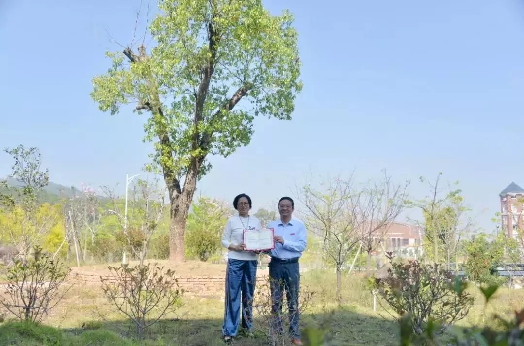电力8942班校友认捐移植自学院旧校区香樟树一棵,班主任陈金星代表班级进行捐赠,学院党委副书记黄瑞梅为校友颁发捐赠证书。