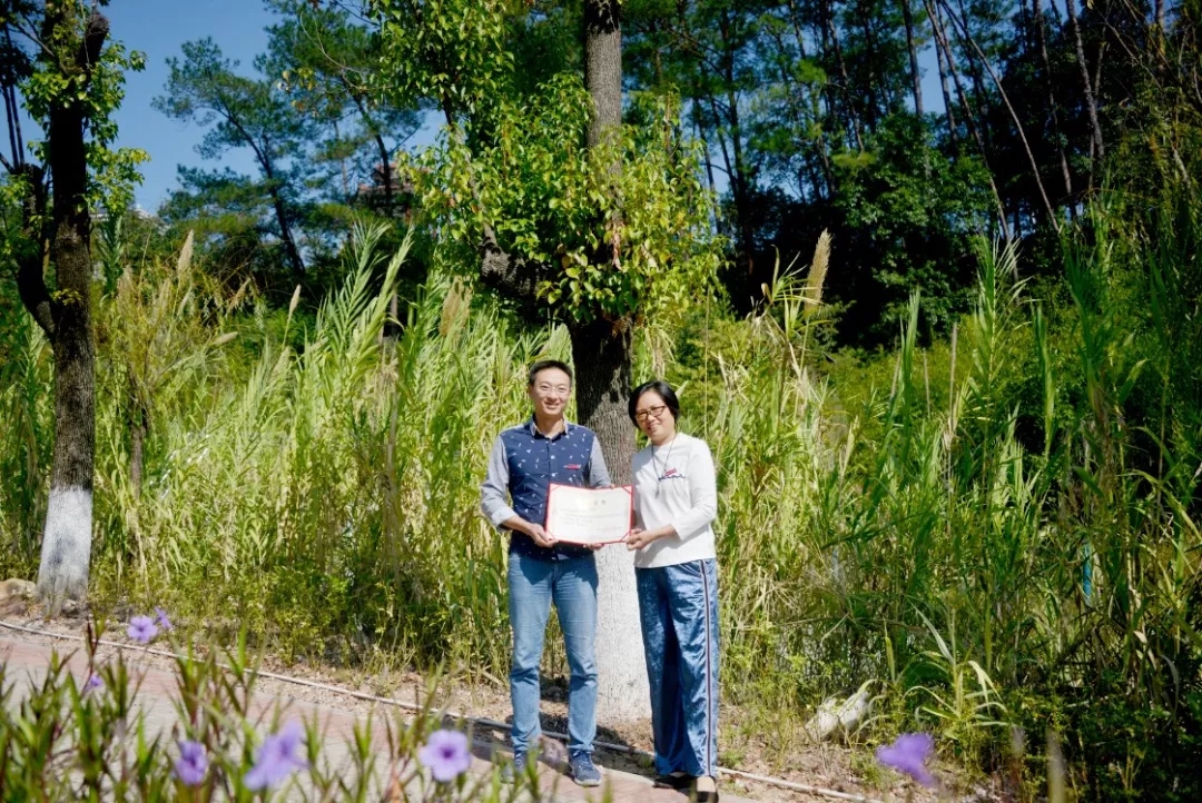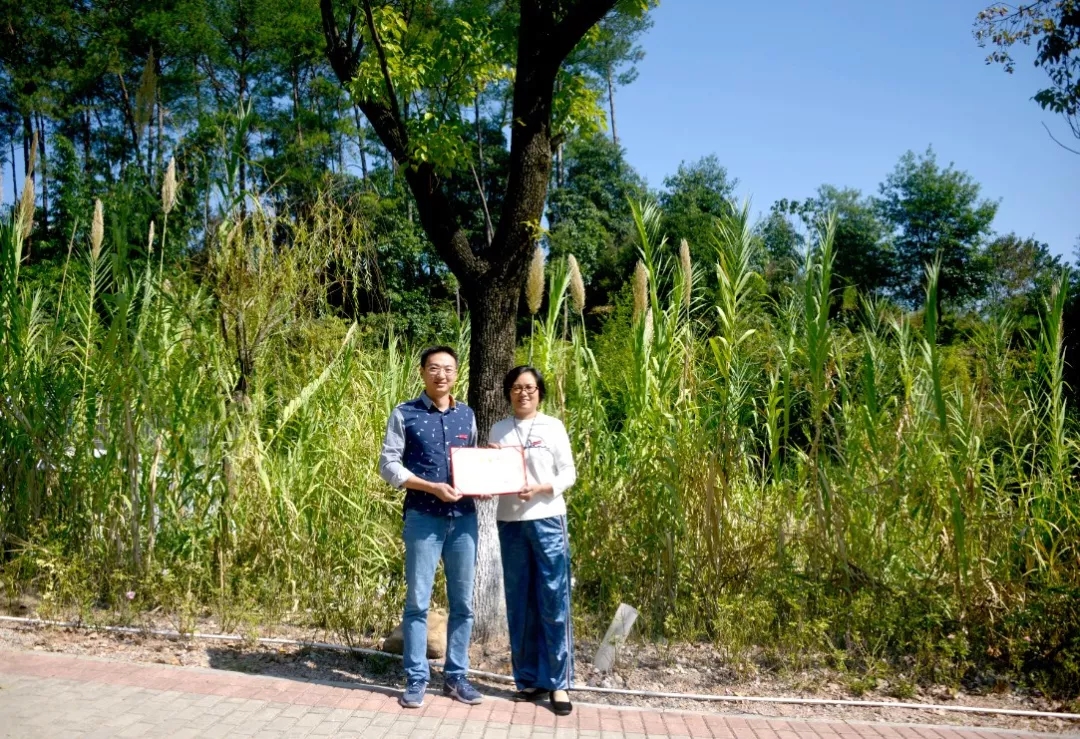 水管9741班校友认捐禹兴园一号楼楼下行道白玉兰树,任课教师张美新代表班级进行捐赠,学院党委副书记黄瑞梅为校友颁发捐赠证书。