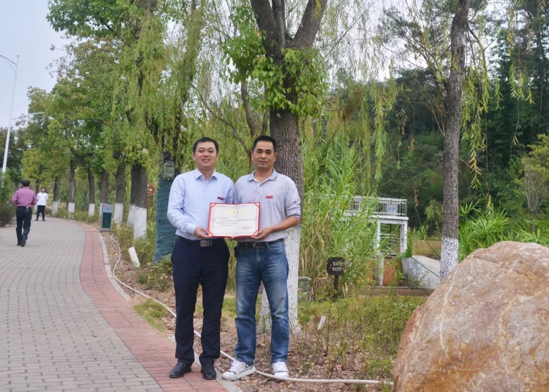 水电9942班校友认捐学院东大门东山路旁香樟树一棵,班主任卓美燕代表班级进行捐赠,学院副院长杨武盖为校友颁发捐赠证书。
