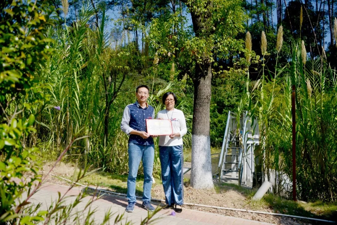 水管9441班校友认捐学院东大门东山路旁香樟树一棵,班主任林张纪代表班级进行捐赠,学院党委副书记黄瑞梅为校友颁发捐赠证书。