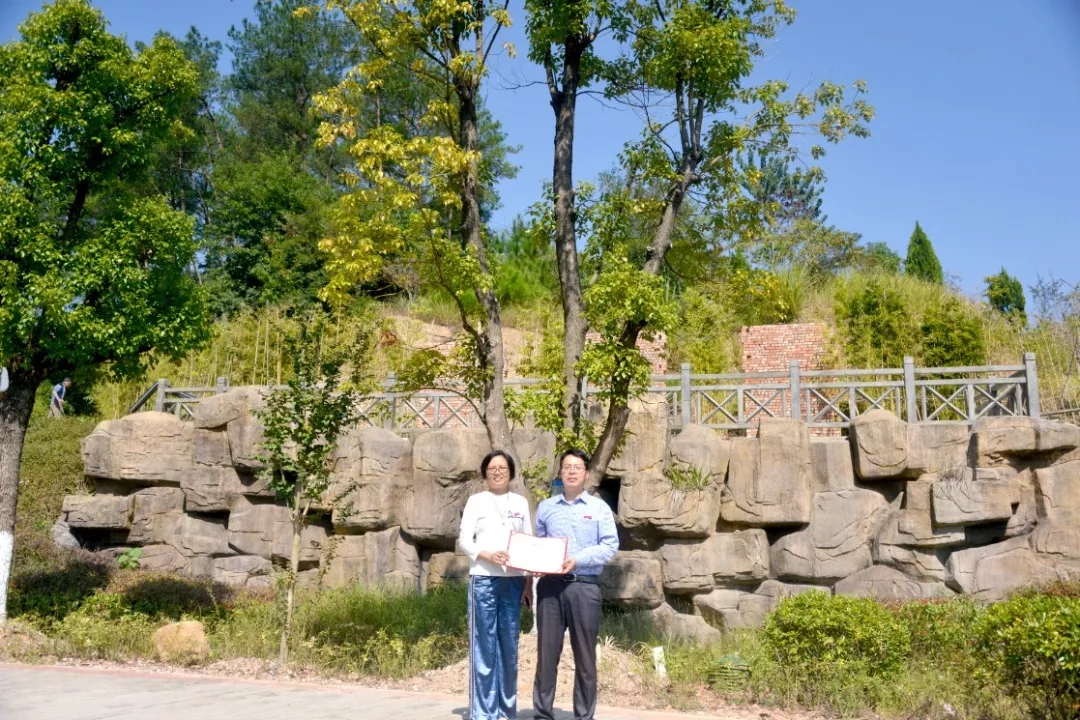 水电0732班校友认捐学院东大门东山路旁香樟树一棵,班主任陈燕晖代表班级进行捐赠,学院党委副书记黄瑞梅为校友颁发捐赠证书。