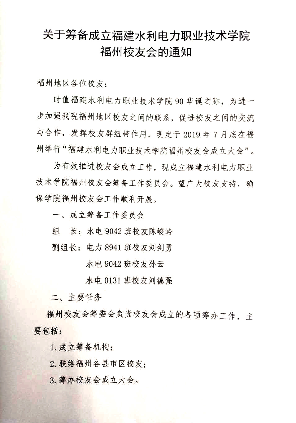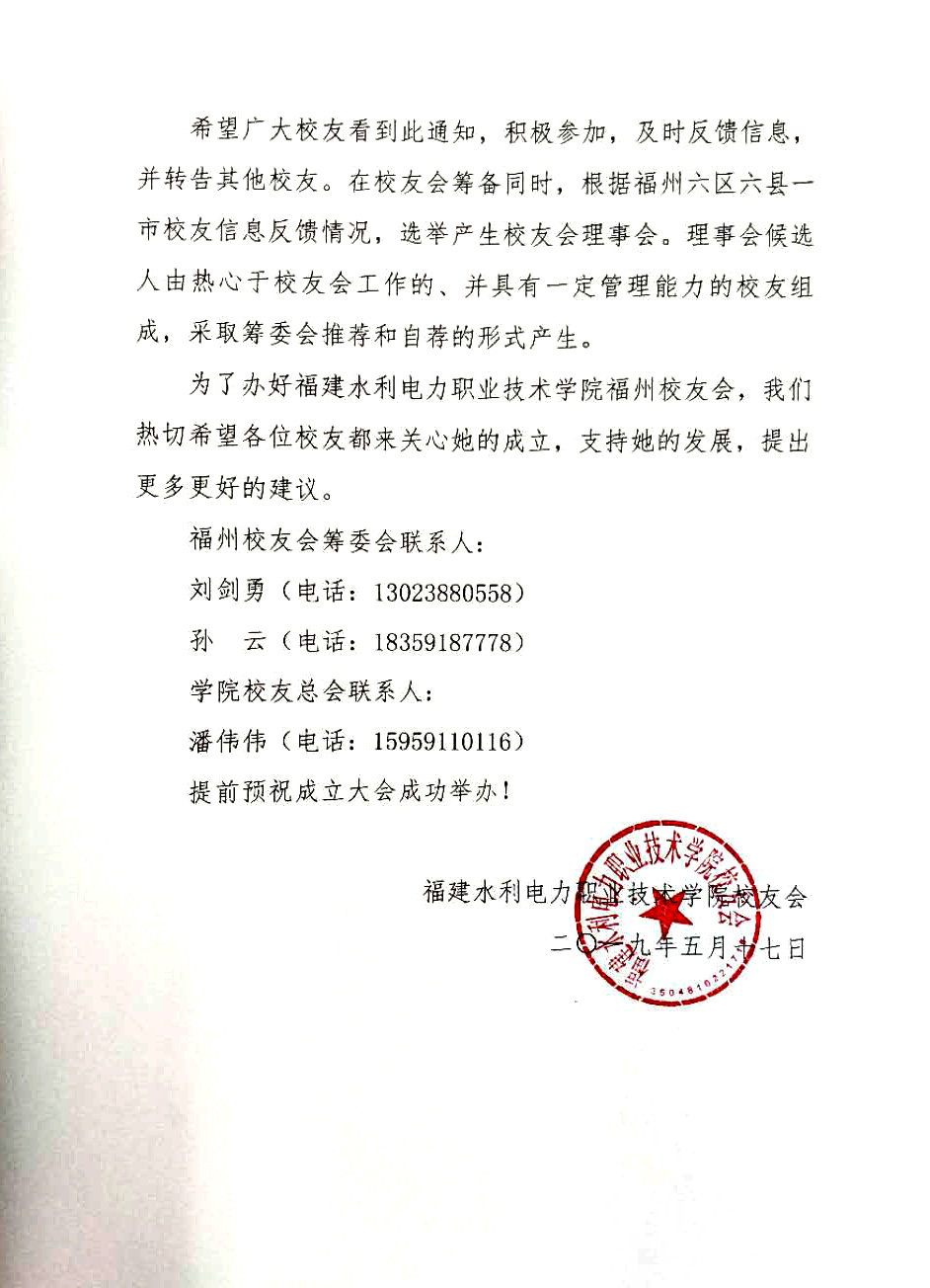 关于筹备成立福建水利电力职业技术学院福州校友会的通知