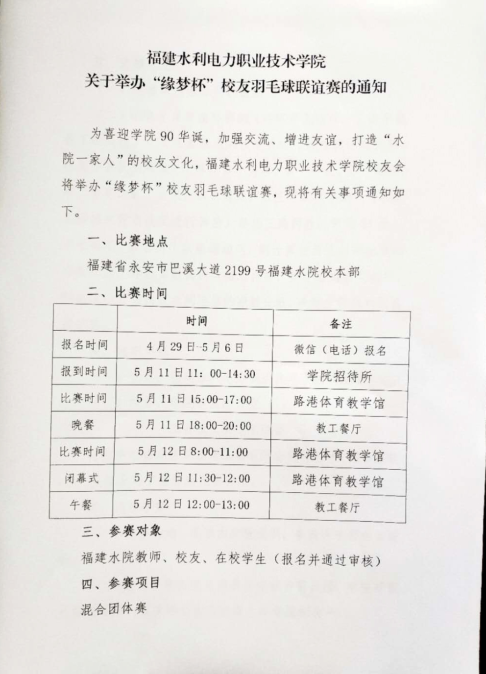 关于举办“缘梦杯”校友羽毛球联谊赛的通知