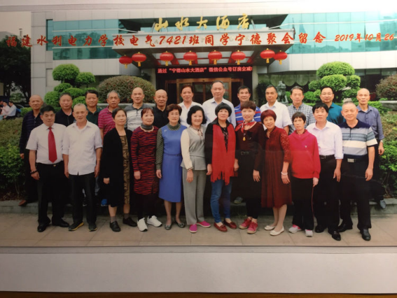 10月26-27日,福建水利电力职业技术学院电气7421班校友会在宁德山水大酒店举行,陈宝国、李光泓、陈发耕余正淦、苏民主、余琴、邓生釗、钟设炎、郭淡年、林建议、林理智、陈定胜、梁雅琴、洪锰斌及邓璇敏、王柏青及夫人、刘福弟及夫人、范仕生及夫人、林交煌及夫人、王木森及夫人25人参加聚会。