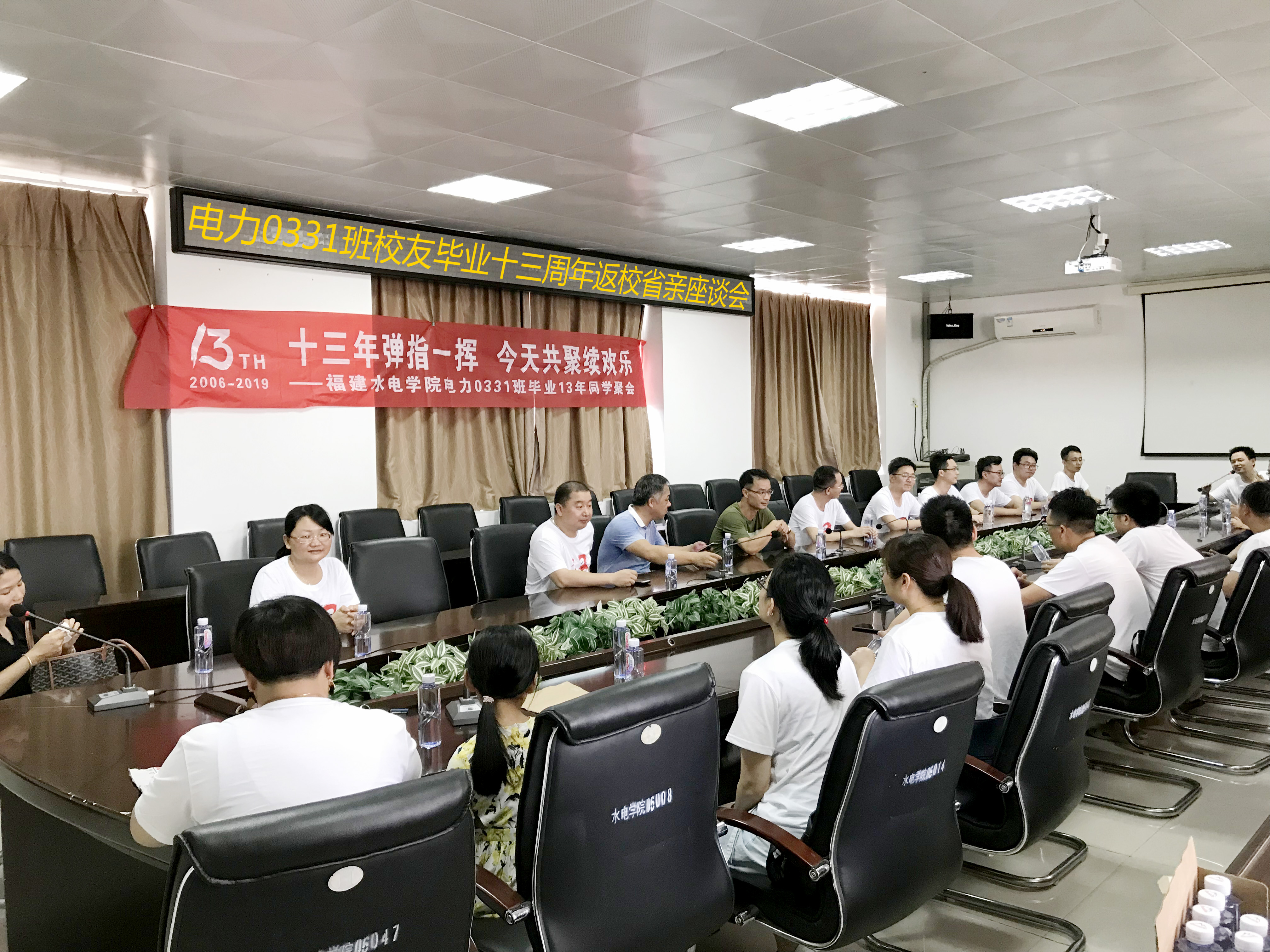 8月3日下午,学院电力0331班毕业13周年返校省亲座谈会在禹兴园第五会议室举行。学院教务处处长包晓晖、电力系主任林世治、班级辅导员林杰老师等相关同志参加了座谈会。