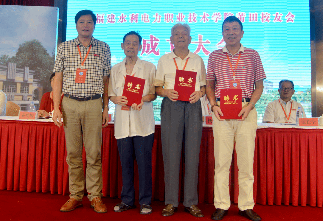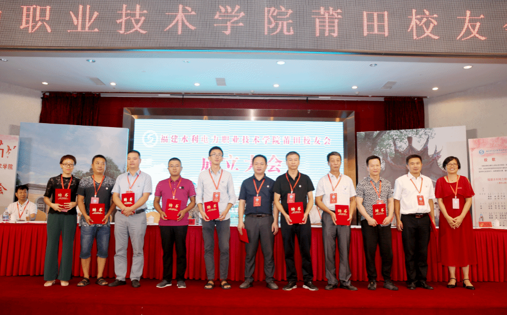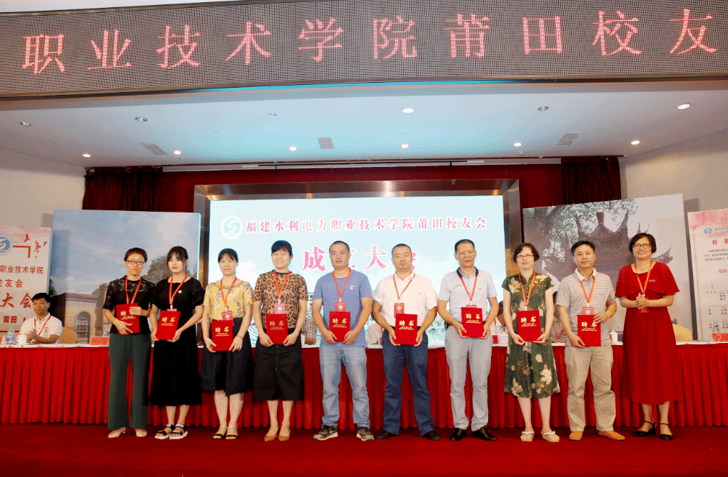 8月10日下午,福建水利电力职业技术学院莆田校友会成立大会在莆田市海源酒店举行。学院党委书记庄伟廉,院长杨元挺,党委副书记、校友总会会长黄瑞梅,院领导池长全、杨武盖、邱祥光,原福建水利电力学校校长简浩华、福建水利电力职业技术学院原院长江勇,原莆田私立东山职业学校创办人之一林兆麟的亲属,厦门、漳州、龙岩校友会负责人等到会祝贺。来自莆田地区各行各业的近200名校友代表欢聚一堂,共同见证了学院莆田校友会的隆重成立。