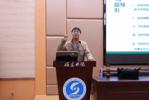 讲座中,赖举添结合自己多年的实践经验,从雷电对电力线路的危害、我省雷害情况、电力线路如何防雷、典型防雷设计及思考等方面展开。他分享了多年收集的现场图片及案例,并提出了对雷电方面的新思想——将“雷害”变为“雷利”,给老师和同学们很多启发。