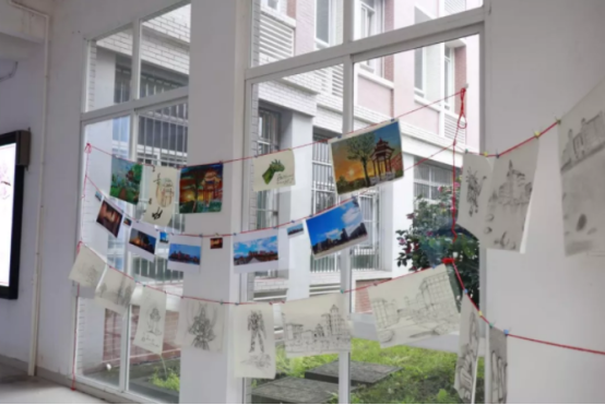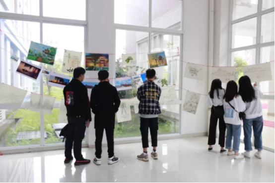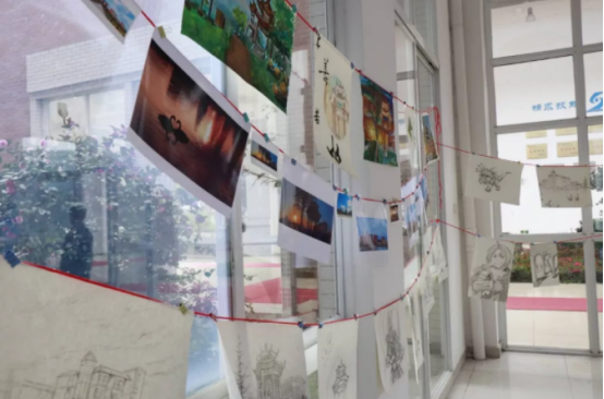 本次展览共展出三十余张的素描画、彩绘、大型水墨画以及十余张水院美景照片。其中,绘画作品均是由环艺1831团支部成员亲自创作,包含校园风景、卡通人物设计、服装设计、商标及节日设计等;展品中的艺术字设计则由环境艺术教研室的党员教师完成。一张张精致的作品吸引了许多过往师生驻足观看。