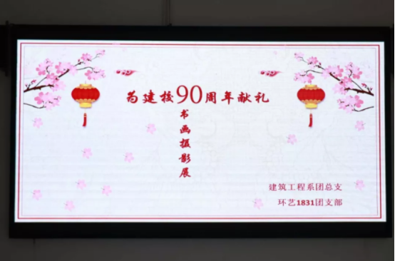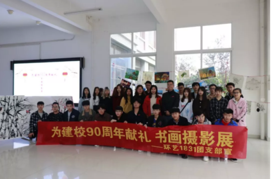 为迎接九十周年校庆,进一步推进党员教师与班级团支部的共建工作,4月12日下午,在建筑工程系第三党支部党员教师的指导下,环艺1831团支部在禹兴园7一楼大厅举办“为建校90周年献礼”书画摄影展。