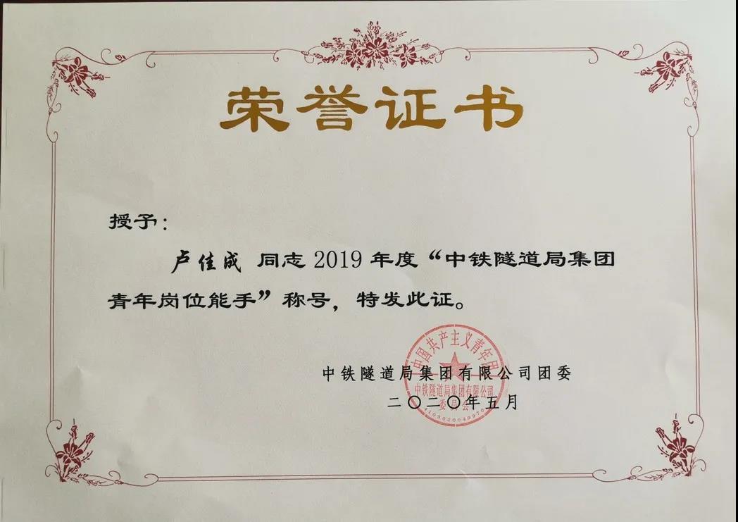 毕业后卢佳成成为了中铁隧道集团三处有限公司测量分公司的一名测量员,刚参加工作的他就被项目委以重任,与其他测量技术员开展深中通道的控制网测量。工作中他加班加点、任劳任怨,无论何时都以极强的责任心,饱满的热情和良好的心态全身心的投入工作。在技术攻关中他刻苦钻研,将所学的水利水电专业知识与测量相结合,不但大大地提高了他自身业务水平,更为整个团队提供了许多好用的新方法。正因如此,在毕业后还不满两年的时间,卢佳成校友作为单位的一名“新人”,就被单位评为“集团公司青年岗位能手”,并荣获了河南省五一劳动奖章这一殊荣。