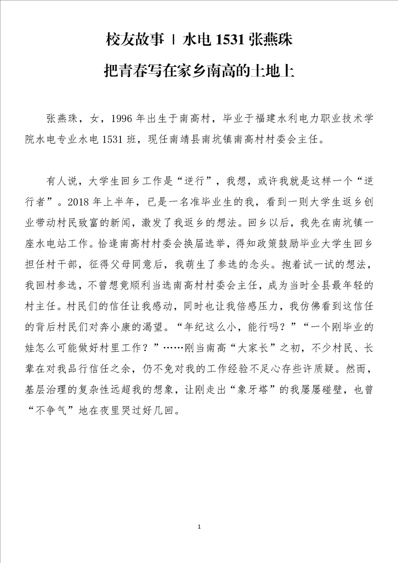 校友故事 | 水电1531张燕珠:把青春写在家乡南高的土地上