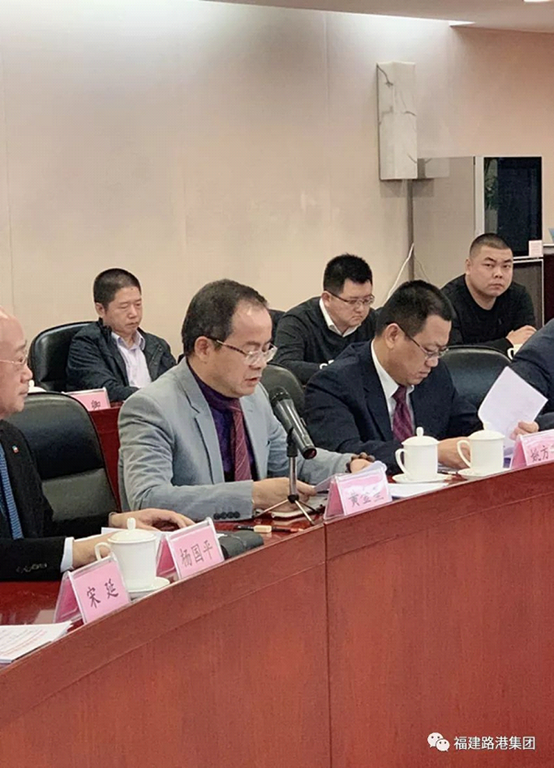 黄金星董事长在会上首先介绍了福建路港集团成立13年来,路港人爱拼敢赢,勇为人先的发展历程及取得的成就,并对促进交通运输提质增效升级的有关做法和设想提出了自己的看法;并做为施工企业代表就目前民营施工企业发展壮大中提出了五大困难(业务难、施工难、结算难、融资难、发展难)及破解建议,受到了李小鹏部长的赞扬和肯定。